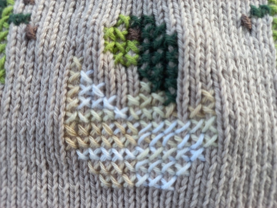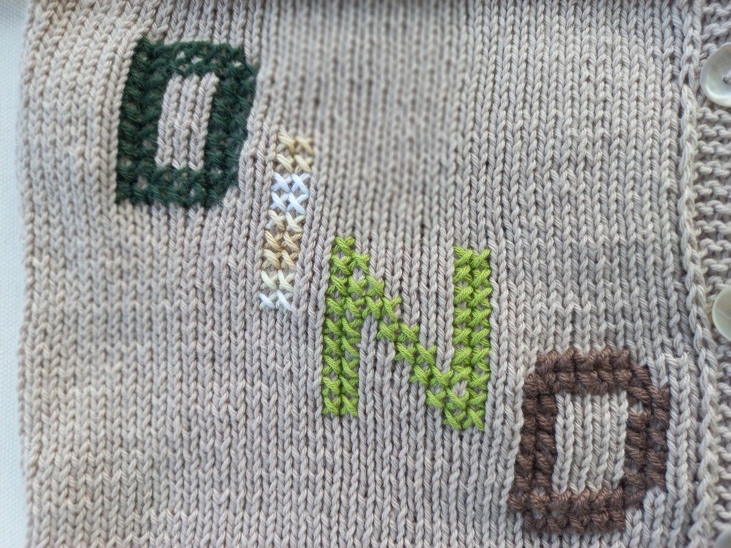 Man könnte die Motive nach meiner Anleitung auch einstricken. Genau so gut kann man die Jacke auch ohne Stickerei anfertigen. Durch die Farbe und das schlichte Muster ist sie ein echtes Kombitalent!