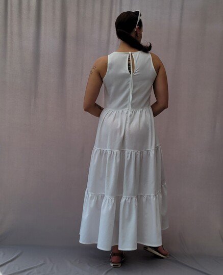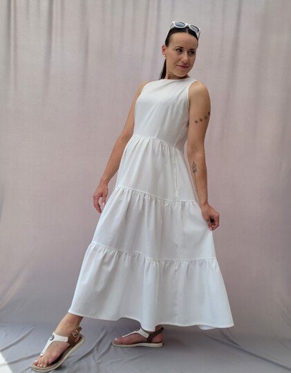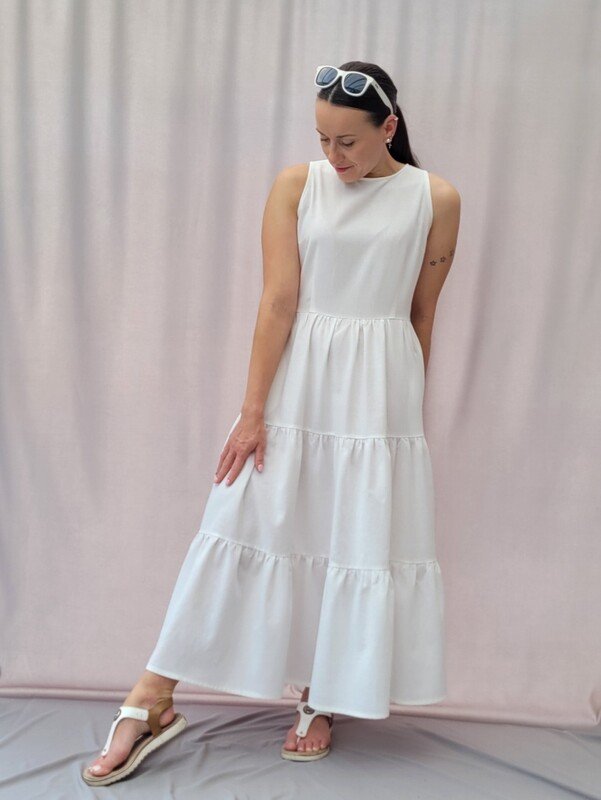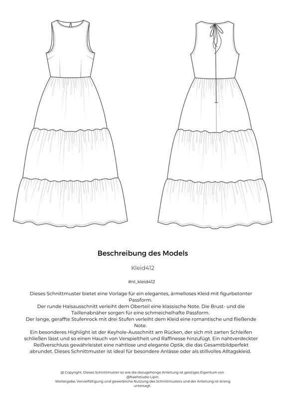 Nähmöglichkeiten: Du kannst das Kleid auch mit nur zwei Stufen nähen, falls du es etwas kürzer haben möchtest. Wenn du die erste Stufe verlängerst, ist es auch mit einer Stufe möglich. Der Fantasie sind hier keine Grenzen gesetzt.