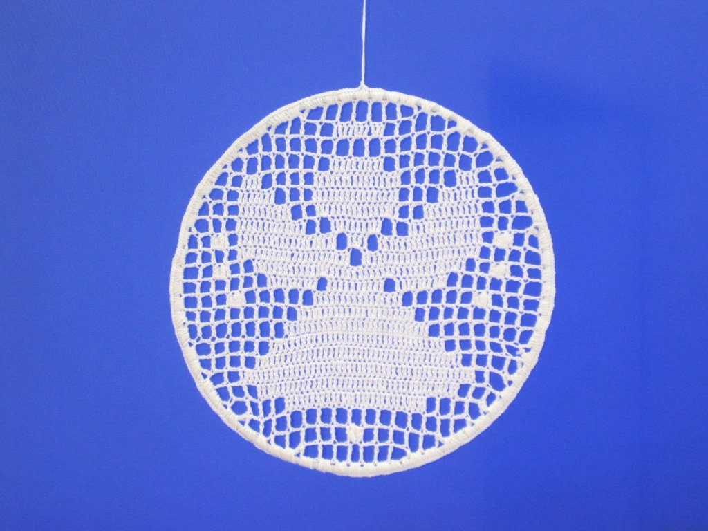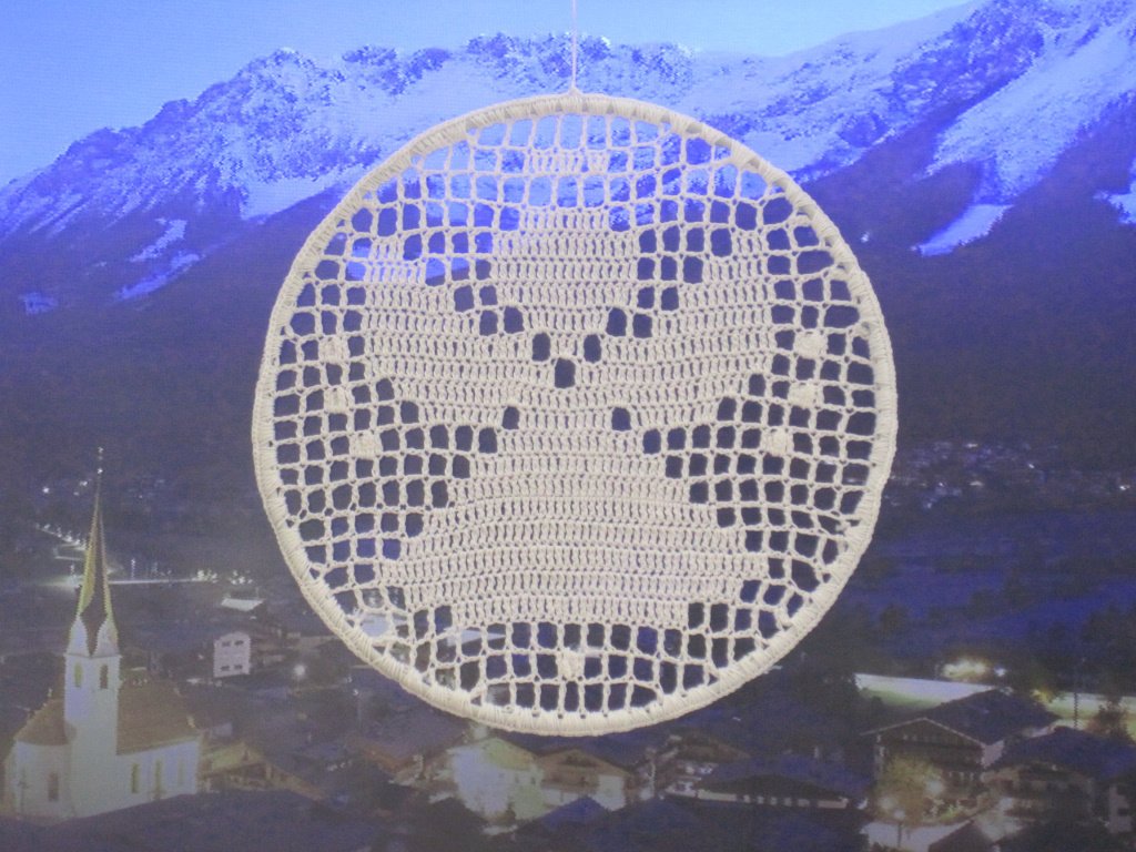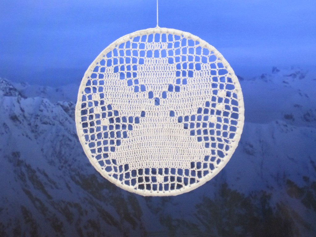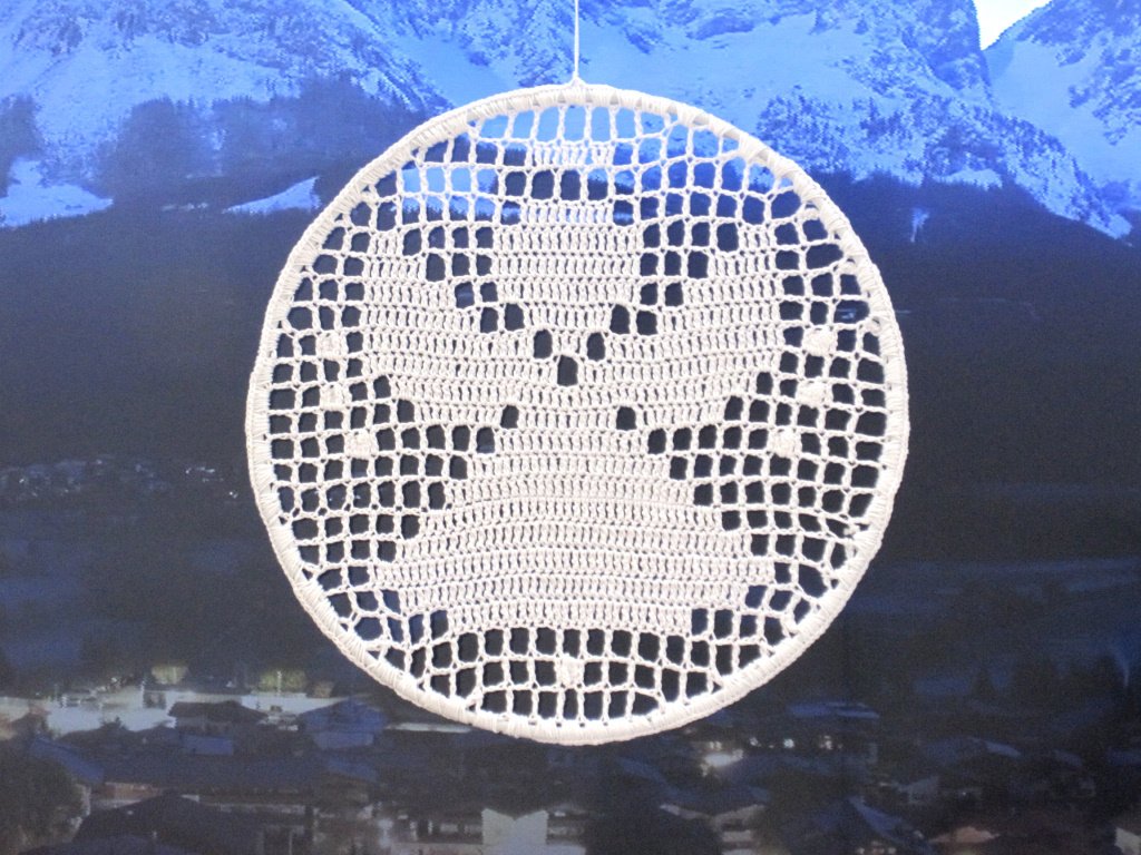 Eine Häkelanleitung mit Grundlagen für Fensterbilder im Filet-Muster und die Häkelanleitung zum Fensterbild ENGEL.