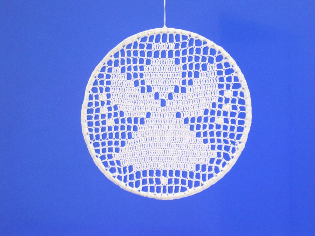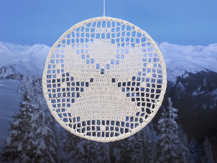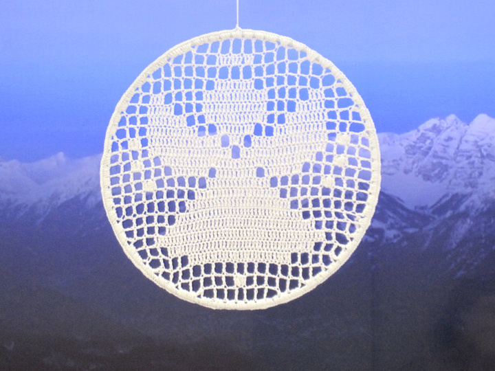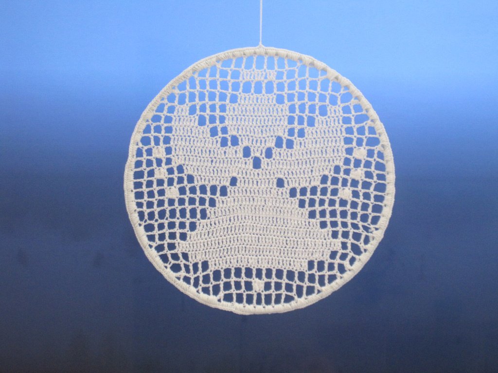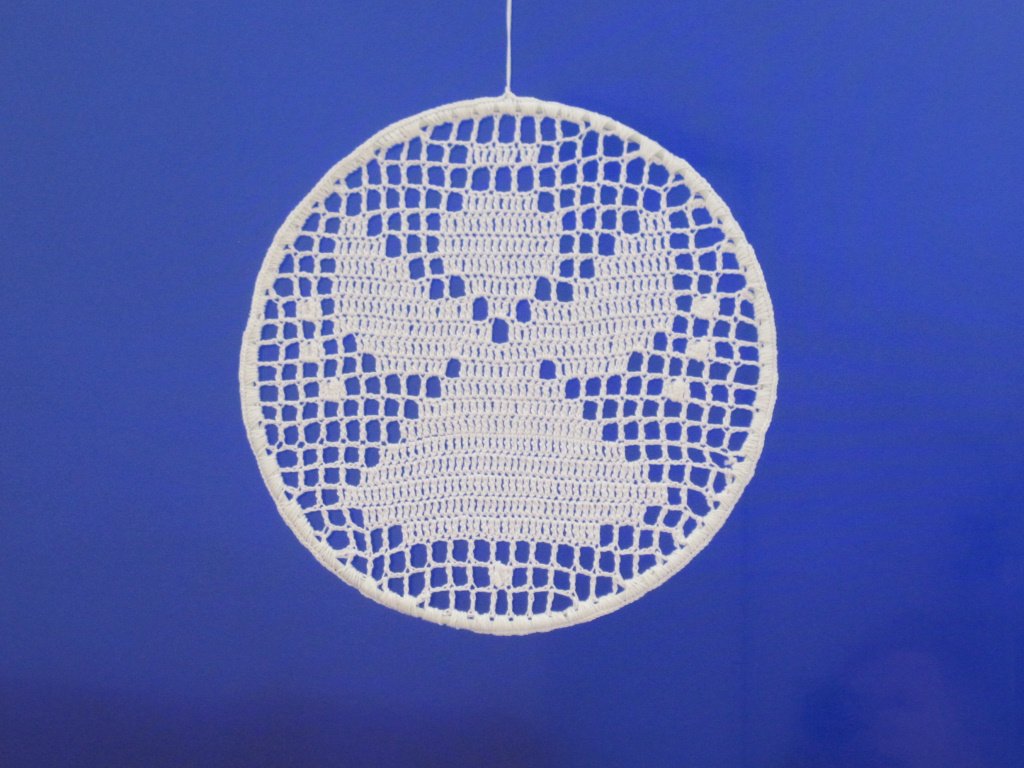Eine Häkelanleitung mit Grundlagen für Fensterbilder im Filet-Muster und die Häkelanleitung zum Fensterbild ENGEL.