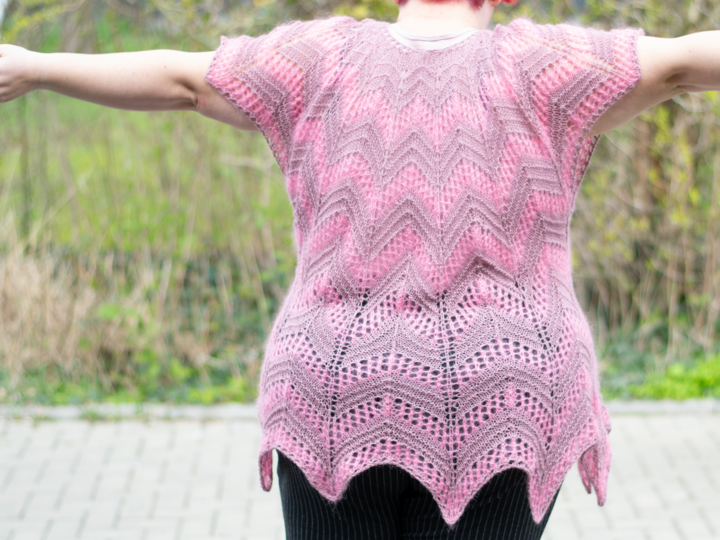 Abgesehen von einer Größenspanne von 76 cm bis 164 cm (Brustumfang des Trägers, Maß des Shirts größer), enthält die Anleitung Abwandlungen für verschiedene Abschnitte (Rundpassenlänge, Ärmelweite, Brustweite, Taillierung, Körper). Der Körper kann komplett gerade bis hin zu sehr rüschig (Tellerrock) gestrickt werden.