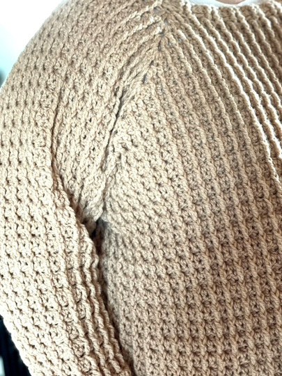Du bekommst 9 Seiten schriftliche Anleitung, 3 Seiten dazugehöriger Häkelschrift sowie den Link zu einem kleinen Video, in dem die Ärmelschließung erklärt wird.