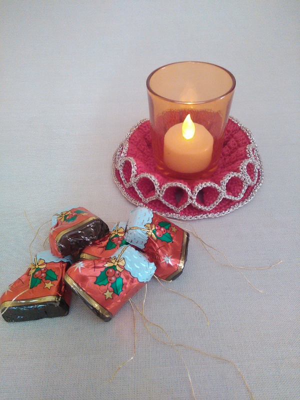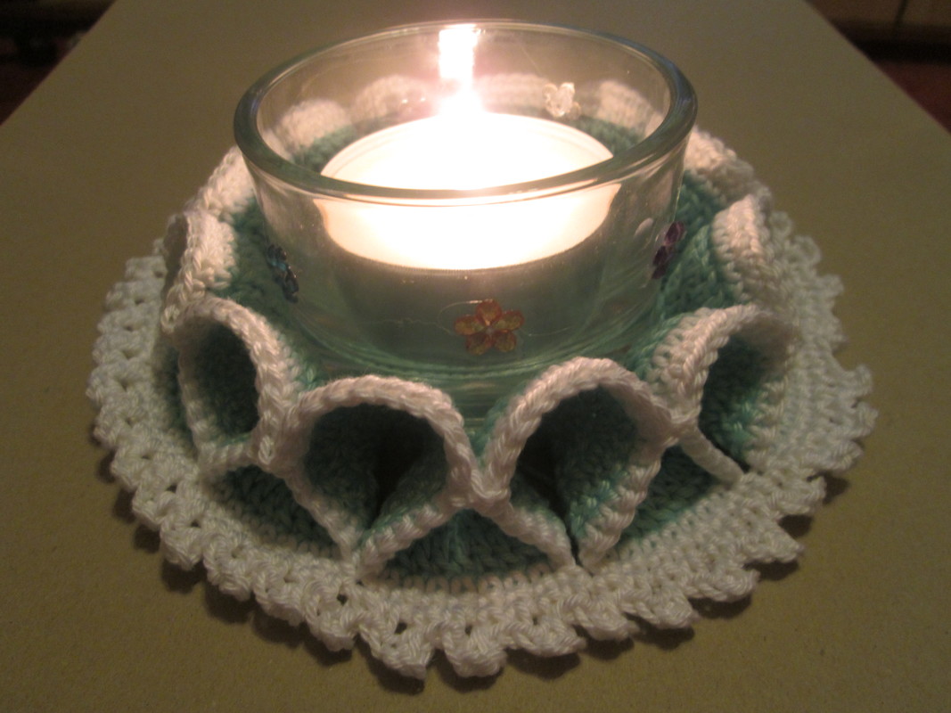 Dekorativer Teelichtunterstzer, gehäkelt, 15 cm Durchmesser, für Tellichthalter bis 8 cm Durchmesser (auch für Deko-Gläser und Vasen geeignet)