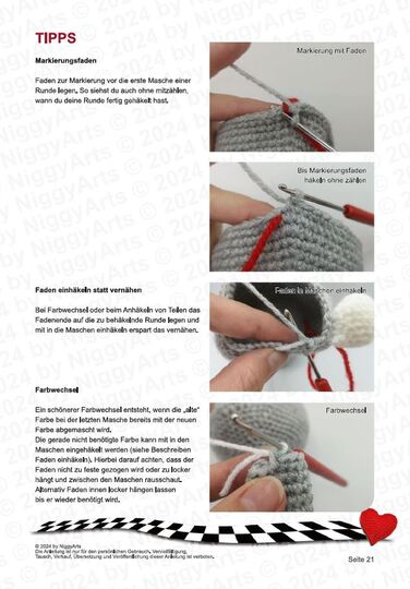 Zudem beinhaltet die Anleitung ein paar Häkeltipps für diejenigen, die noch nicht so oft Tiere gehäkelt haben (z.B. über das richtige Ausstopfen, Farbwechsel...).