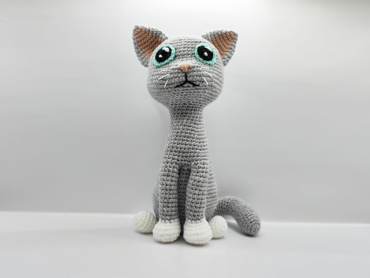 Fast ohne (lästiges) Zusammennähen!!! -denn bis auf die Details wie Augen und Ohren (ggf. Flügel) wird diese Katze in einem gehäkelt.