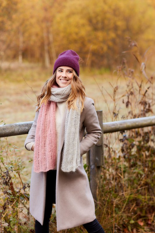 Garn: Bingo von Lana Grossa (100 % extrafeine Merino-Schurwolle), 80 m/50 g und Lace von Lang Yarns (58 % Mohair Superkid, 42 % Seide), 310 m/25 g