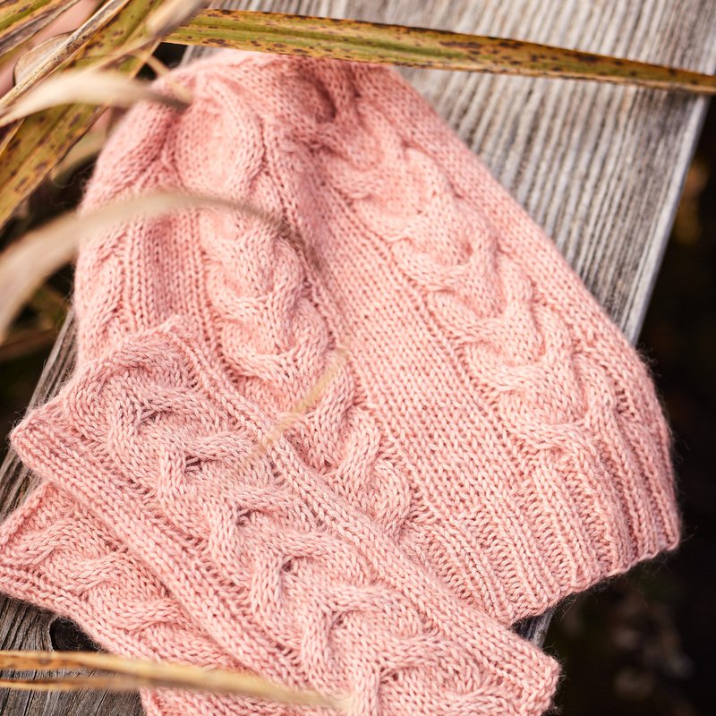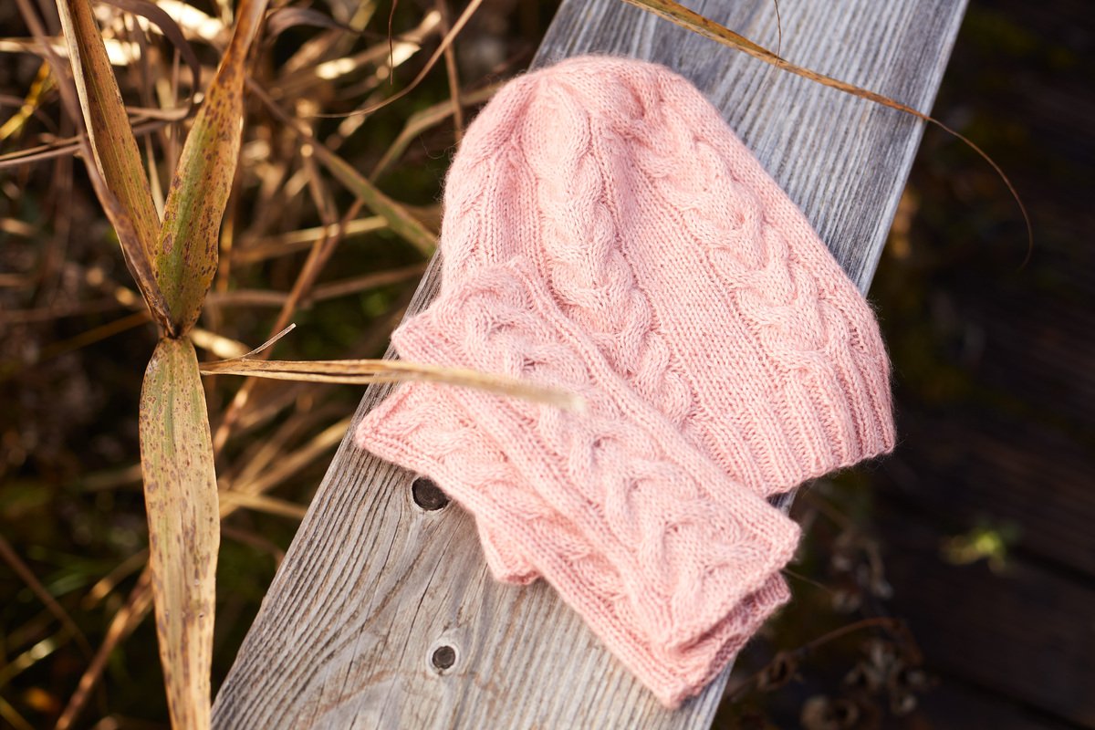 Nadeln: Stricknadeln 3 und 3,5 mm bzw. die Größe, mit der die richtige Maschenprobe erreicht wird. Die Mütze lässt sich am einfachsten auf einem Nadelspiel in Runden stricken.