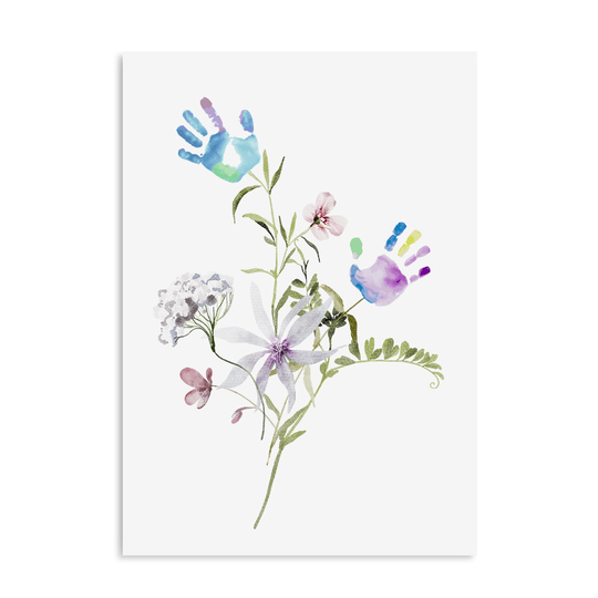 Druck es Dir in dem gewünschten Format zu Hause aus und dann lass Dein Kind einen Handabdruck auf das Poster drucken. Der Handabdruck Deines Kindes ist dann die Blüte der Pflanze.