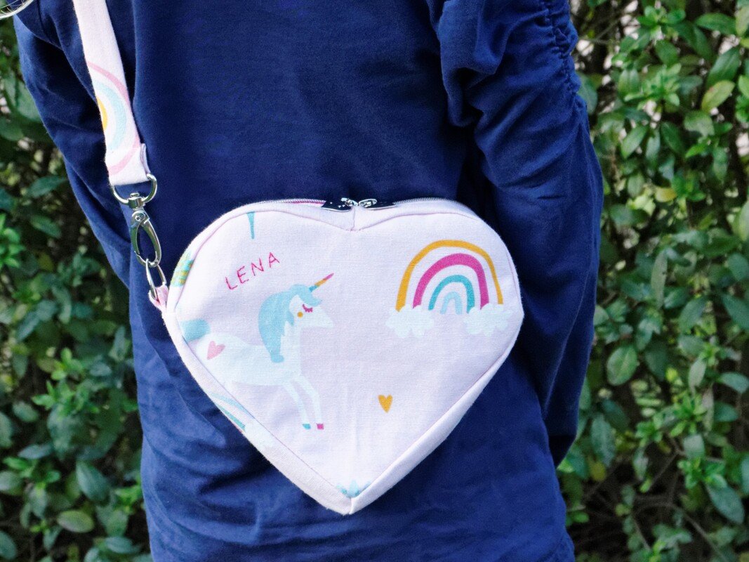 Gibt es in Deinem Leben ein Herzenskind, das unbedingt eine Tasche in Herzform braucht, in dem es seine wichtigsten Dinge verstauen kann? Dazu noch mit praktischem Reißverschluss, damit die kleinen Perlen, Kastanien, Stifte und was Kinder sonst noch so dabei haben nicht gleich wieder das Weite suchen kann? Dann habe ich hier das Richtige für Dich! Dieses Schnittmuster ist eine kleine Herausforderung für fortgeschrittene Näherinnen, aber am Ende hat Dein Herzenskind eine wunderschöne Tasche :-)