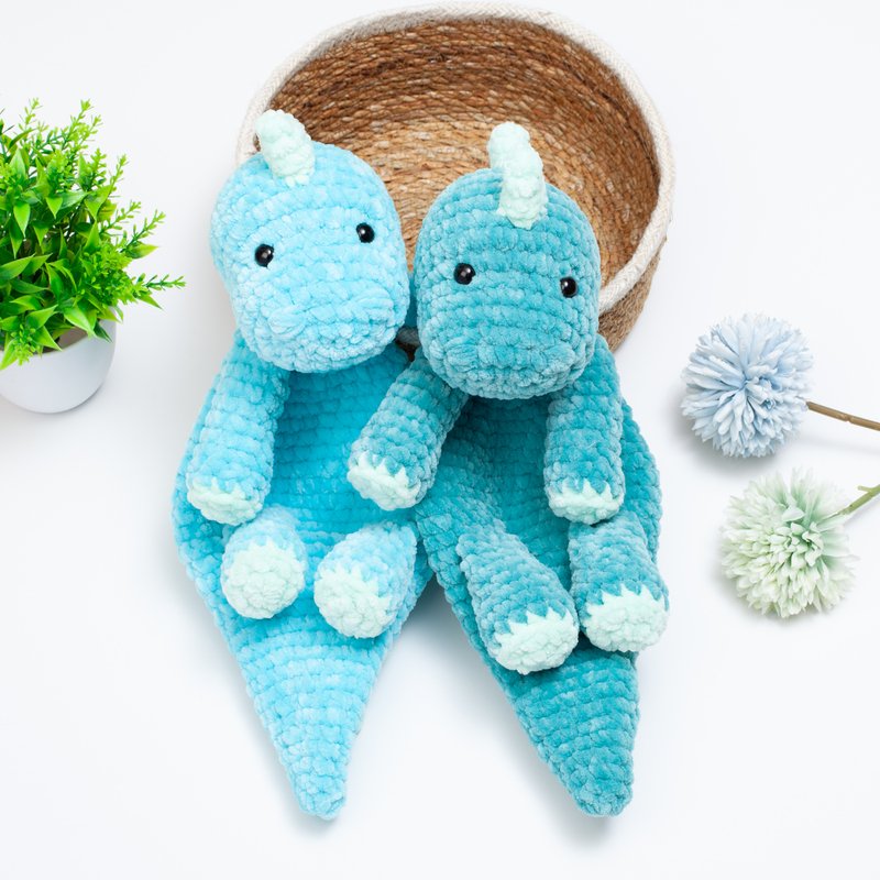 Wenn Du dasselbe Garn und dieselbe Häkelnadel verwendest wie ich, wird der Dinosaurier ca. 34 cm (13,3 Zoll) groß. Du kannst sie größer oder kleiner machen, indem du ein anderes Garn verwendest, passe aber dann die Häkelnadel und die Sicherheitsaugen entsprechend an.