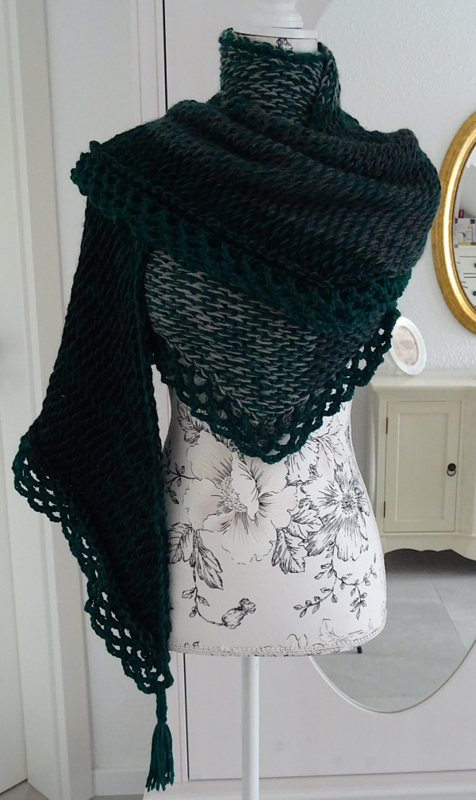 Mit dem Schultertuch „Sanftmut“ findest du den perfekten Einstieg in eine sehr vielseitige und einfache Häkeltechnik, das Tunesische Häkeln. Anhand dieser Anleitung ist jeder Erfahrungsstand in der Lage, den Zugang in die Welt des Tunesischen Häkelns zu finden. Trau dich, wenn du schon öfter mit dieser Häkeltechnik geliebäugelt hast. Es macht wirklich Freude, denn das Ergebnis ist dieses schöne Tuch.