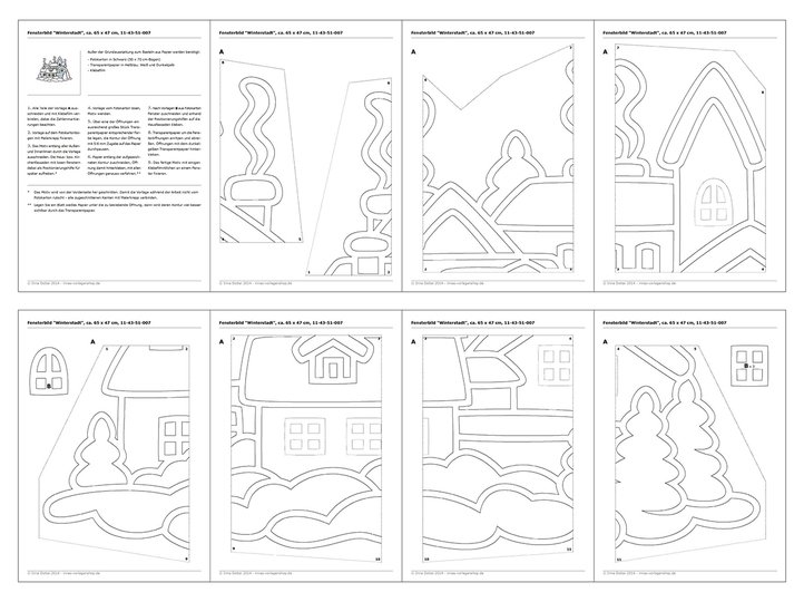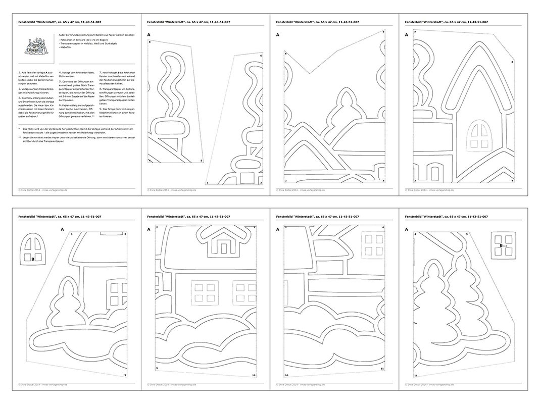 Die PDF-Datei besteht aus einer Anleitungsseite und sieben Seiten mit Vorlagenteilen in Originalgröße, die vor dem Übertragen auf den Fotokarton mit Klebefilm verbunden werden müssen (Zahlenmarkierungen helfen dir dabei).