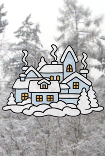 Dieses Fensterbild ist aus Fotokarton und Transparentpapier gefertigt. Das Motiv ist recht groß, deshalb benötigt es ein entsprechend großes Fenster.