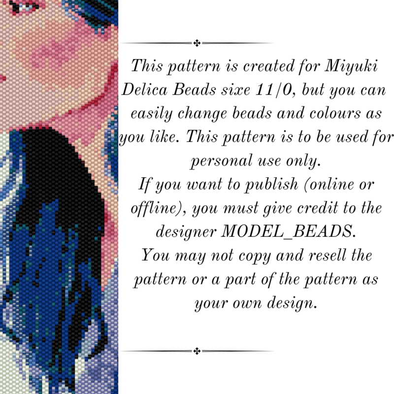 This pattern is created for Miyuki Delica seed beads size 11, but you can change colors and beads as you please.