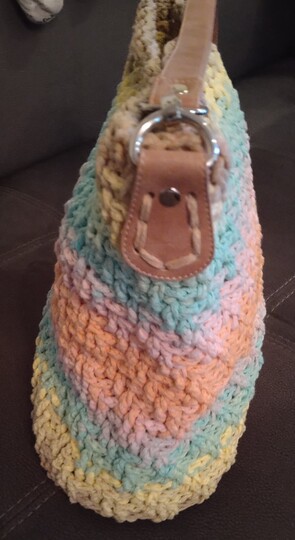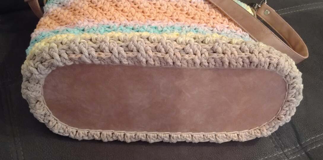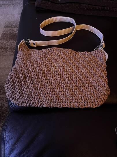 Allerdings benötigt man ein bisschen Kraft in den Händen, da die Tasche nicht zu locker gearbeitet werden darf, da sie sonst zu löchrig ist.