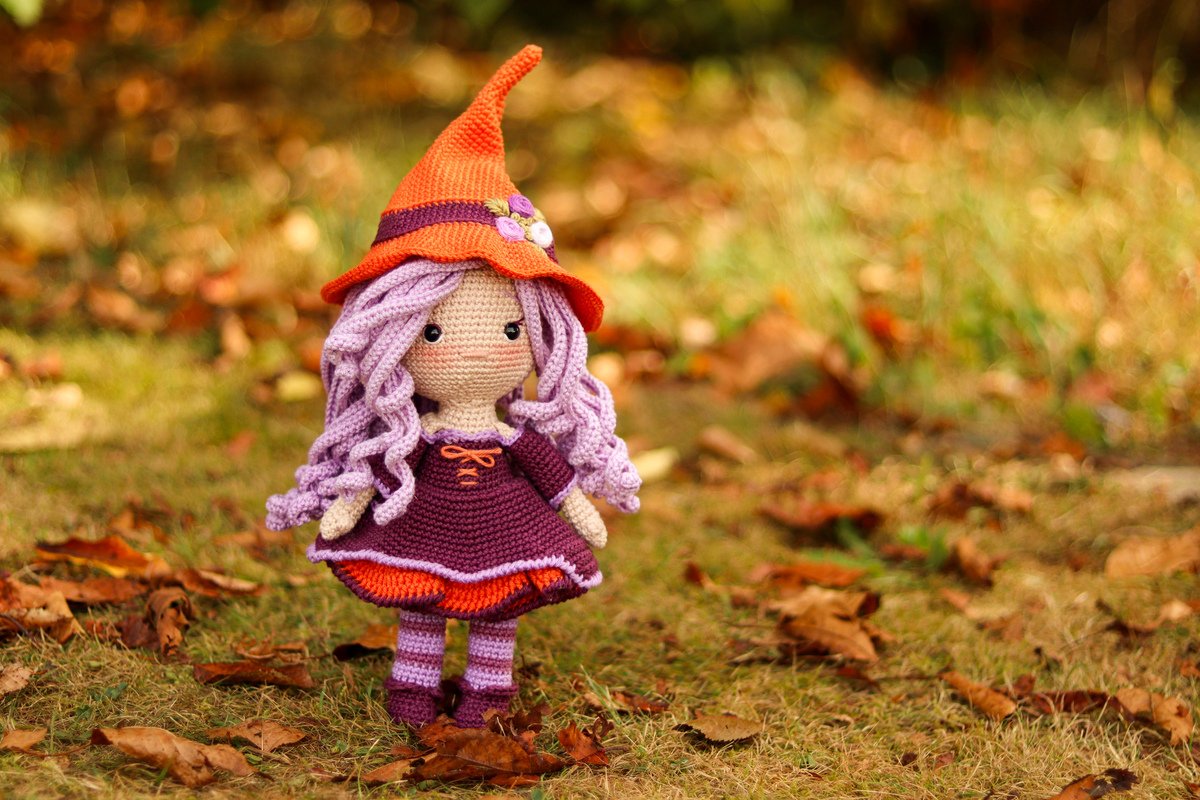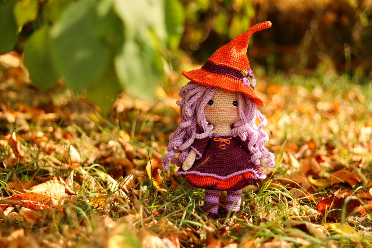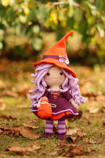 Mit dieser Anleitung kann die Hexe Helene Herbsthauch gehäkelt werden.