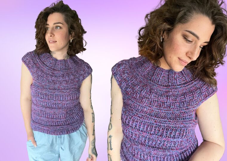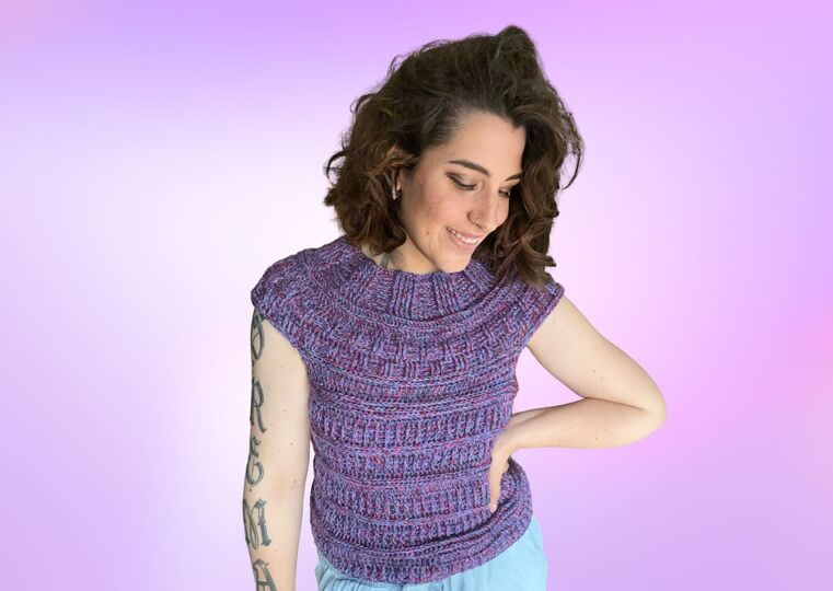 Das Tshirt wird in Einheitsgröße gehäkelt.