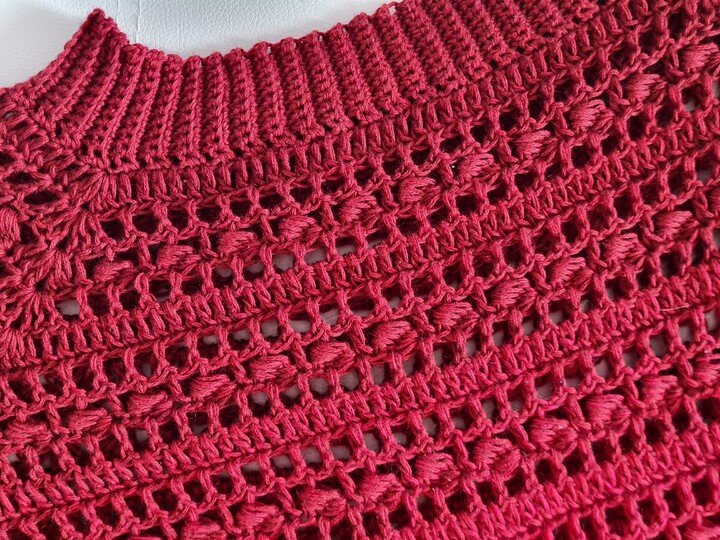 Ihr häkelt zuerst den Körper. Die Ärmel und das Bündchen im Rippenmuster werden direkt an den Körper gehäkelt.