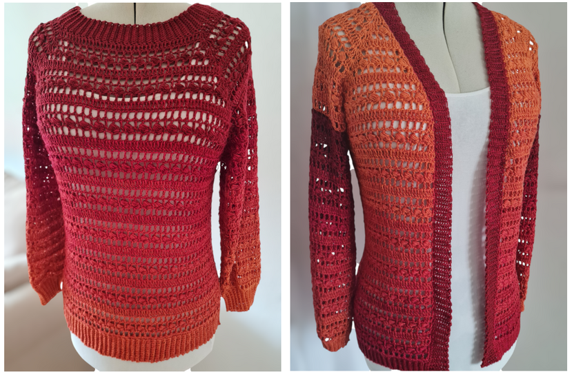 Beide Modelle können durch das RVO Prinzip in jeder Größe gehäkelt werden.