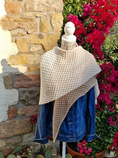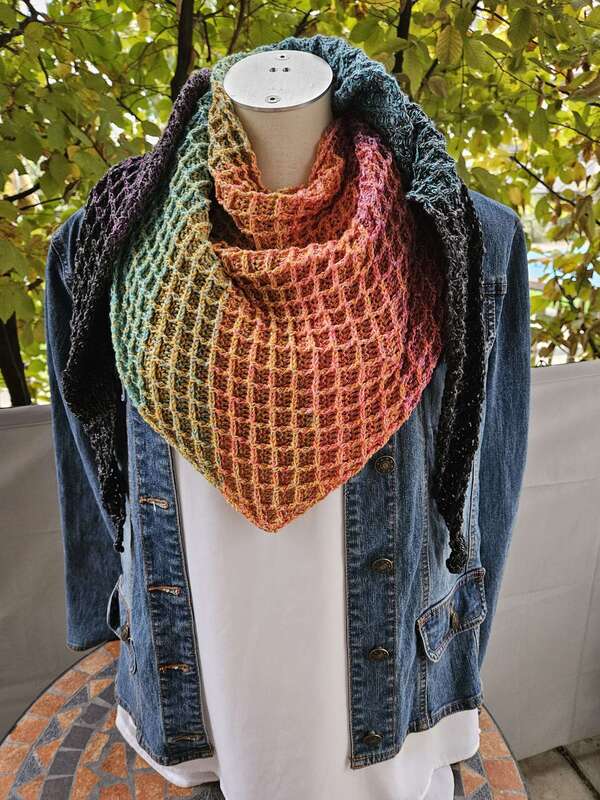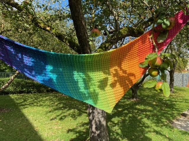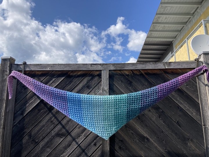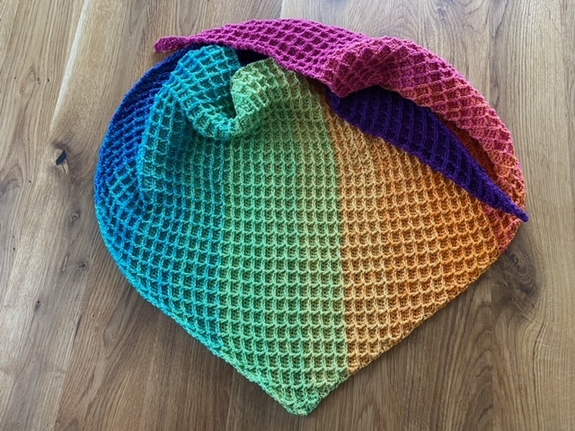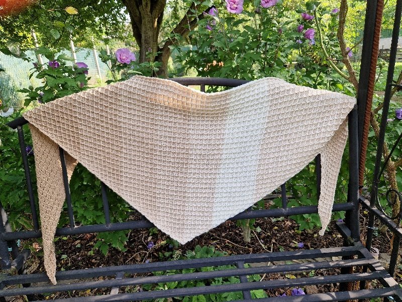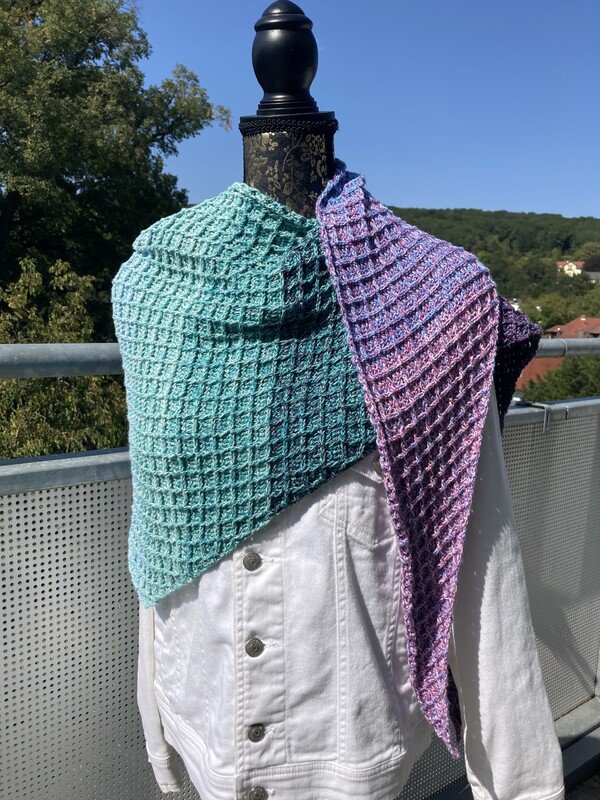 Mad Tartan ist ein flott gehäkeltes flaches Side-to-Side-Dreieckstuch, passend für jede Jahreszeit. Das Muster ist eingängig, hat 100% Suchtfaktor und ist chillig zu häkeln. Wer gerne Waffelmuster häkelt, wird dieses Tuch lieben.