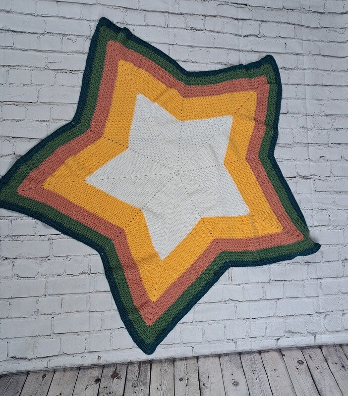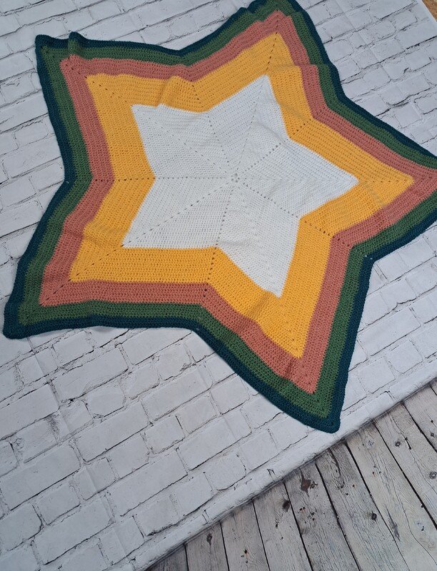 Dies ist eine Häkelanleitung für eine wunderschöne, sternförmige Babydecke. Die Anleitung enthält zahlreiche detaillierte Fotos und ist besonders anfängerfreundlich. Ich habe die Decke in fünf Farben gehäkelt, aber sie lässt sich auch ganz einfach in einer einzigen Farbe oder in jeder gewünschten Farbkombination gestalten. Ein vielseitiges und schönes Projekt, das sich ideal als Geschenk oder Erinnerungsstück eignet.