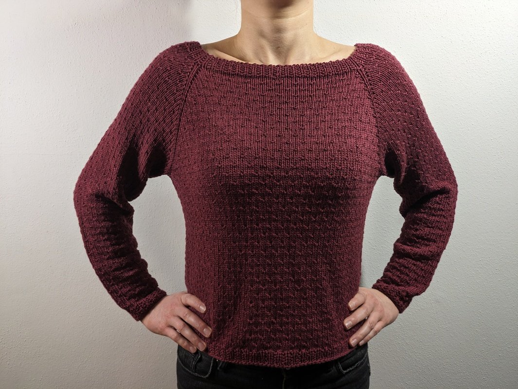 Dank der Stricktechnik Raglan von oben kann der Pulli jederzeit anprobiert und bestens auf die individuelle Größe angepasst werden.