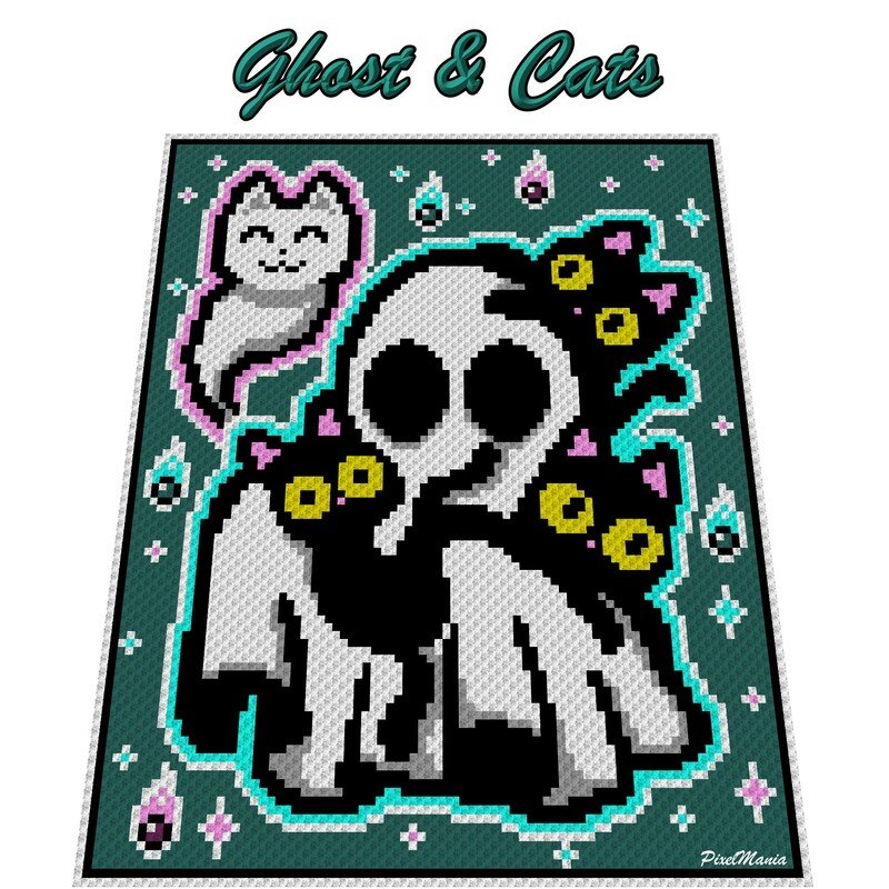Ghost and Cats ist ein digitales Diagramm, das für verschiedene Häkeltechniken verwendet werden kann, hier speziell für Ecke zu Ecke = C2C oder Mini C2C.