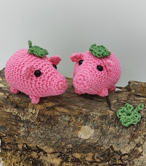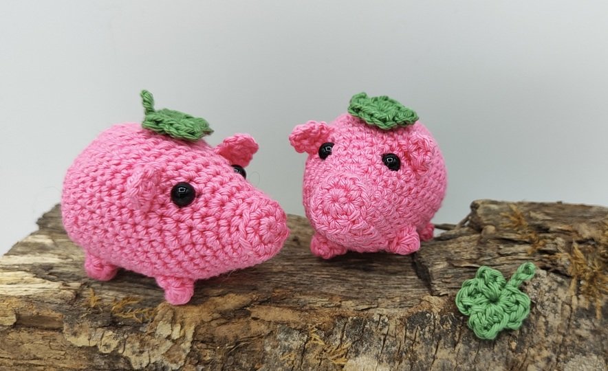 Das fertige Schweinchen, mit den angegebenen Materialien, hat eine Größe von etwa 8 cm