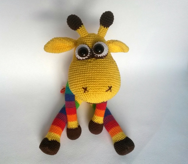 Und genaso ist es - die fröhliche Glücksgiraffe bringt durch ihre lustige Farbkombination Freude und ein Lächeln.