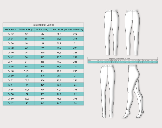 Im Schnittmuster enthalten sind die Damengrößen 32 - 62