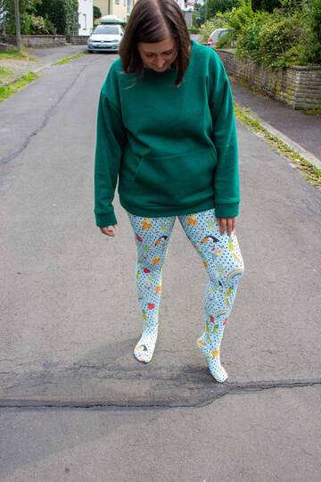 Dieser Schnitt für eine Strumpfhose oder Leggins aus Baumwolljersey o.ä. Materialien mit Gummibund und 2 Bundhöhen für höheren Komfort, trägt den schönen Namen "Heldin in Strumpfhosen".
