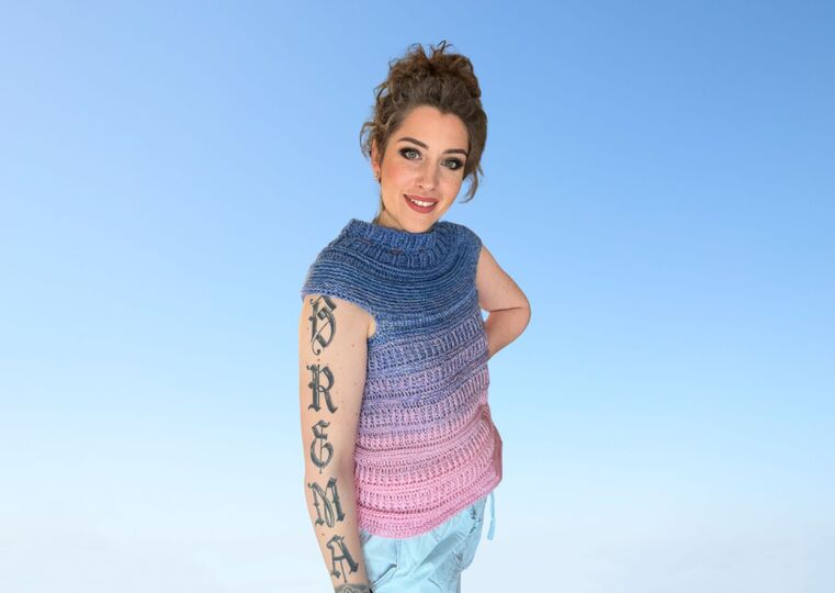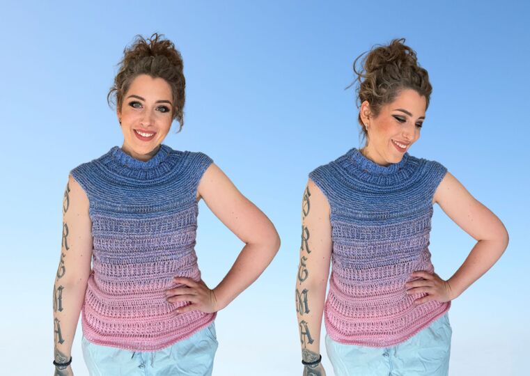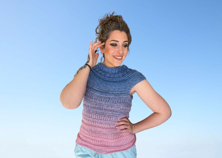 Das Tshirt wird in Einheitsgröße gehäkelt.