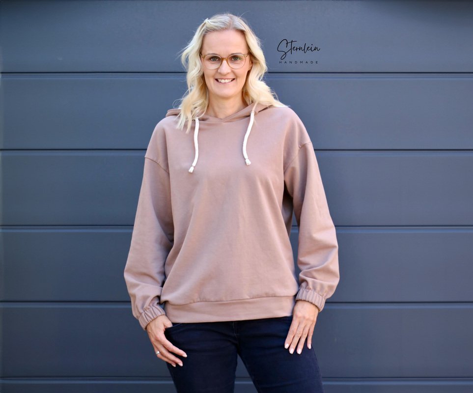Modernes Design trifft auf bequeme Lässigkeit Bereite dich darauf vor, deinen neuen Lieblingshoodie zu nähen – den Hoodie „Boston“ für Damen. Dieses Schnittmuster bietet nicht nur eine lässige Oversize-Passform, sondern auch die Möglichkeit, zwischen einem sportlichen Kapuzen-Design und einem schlichteren Look mit Halsbündchen zu wählen. Die modisch überschnittenen Schultern verleihen dem Hoodie Boston eine coole und entspannte Silhouette, die ideal ist für einen ungezwungenen, stylischen Alltagslook. Der Hoodie Boston ist in einem umfassenden Größenbereich von 32 bis 58 verfügbar, sodass für jede Figur die passende Option dabei ist.