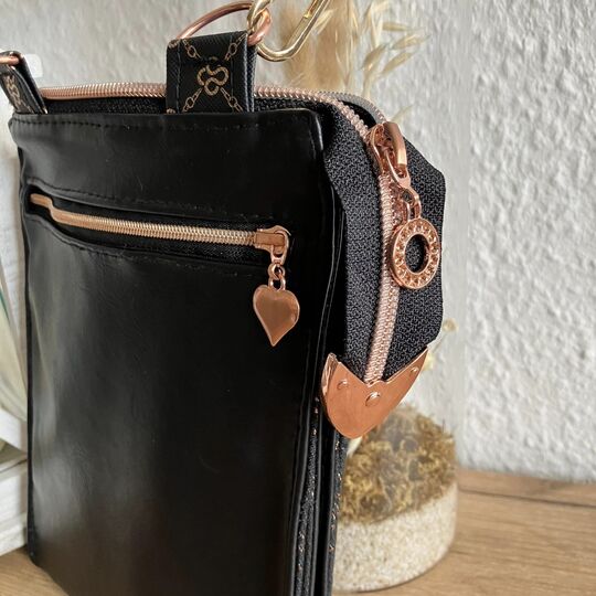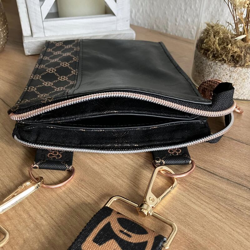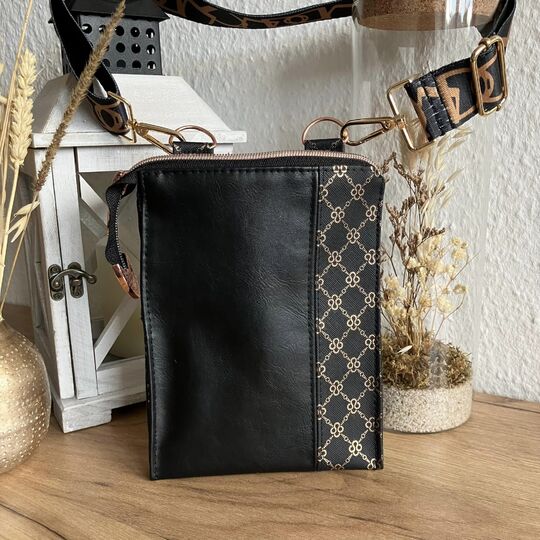 „Calendula“ ist eine kleine Umhängetasche für das Nötigste wie Handy, Schlüssel, Geld. Sie hat eine Größe von 21 x 16 cm und wird mittels Reißverschluss geschlossen. Ein optionales Reißverschlussfach kann innen und/oder außen angebracht werden. Ebenso kannst du sie mittels teilbarer Elemente zu einen kleinen Hingucker werden lassen.