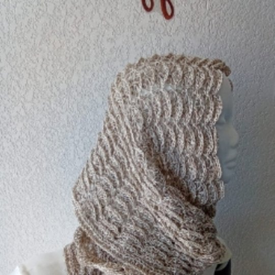 Dieser elegante Snood ist mit einem hübschen Blattmotiv gehäkelt, das dem Design eine raffinierte Note verleiht.
