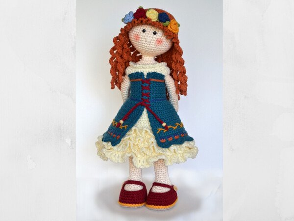 Das Muster enthält viele detaillierte Schritt-für-Schritt-Fotos sowie vollständige Musteranweisungen und Tipps zum Häkeln. BARBARA ist von der Fußsohle bis zum Scheitel in einem Stück gehäkelt, sogar die Arme sind mit dem Körper verbunden. Lediglich das Kleid, die Schuhe und das Haarband der Puppe sind abnehmbar.
