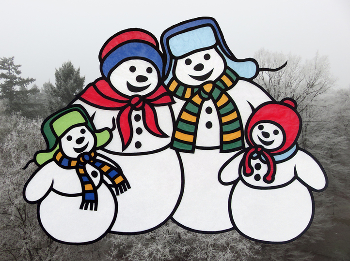 Auch im Winter ist das Wetter draußen oft so grau und nass, dass man am liebsten gar nicht aus dem Fenster schauen möchte. Mit diesem Bild kannst du deine Aussicht etwas winterlicher gestalten und vielleicht gelingt es der Schneemannfamilie sogar, dir ein Lächeln zu entlocken.