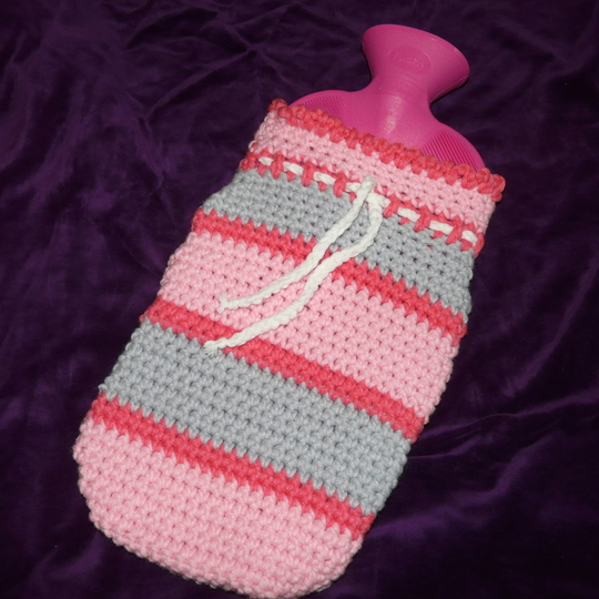 Wer braucht sie nicht für die kalte Jahreszeit: Die Wärmflasche. Damit eure Wärmflasche nicht so "nackig" ist, habe ich einen Wärmflaschenbezug gehäkelt. Er ist farbenfroh und kuschlig. Durch die dicke Wolle ist er im Handumdrehen fertig gehäkelt.
