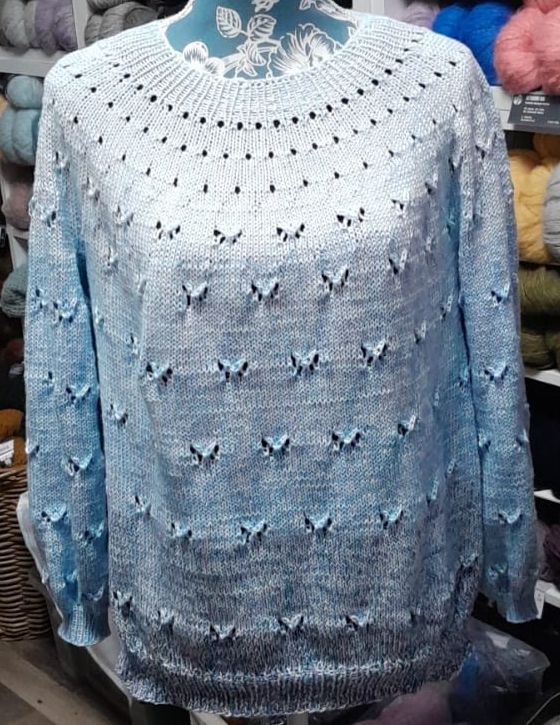 Der Schwierigkeitsgrad ist mittel. Du solltest auf jeden Fall geübt sein, Basiskenntnisse im Stricken haben und wissen, wie man Doppelmaschen macht und ein einfaches Lochmuster strickt.