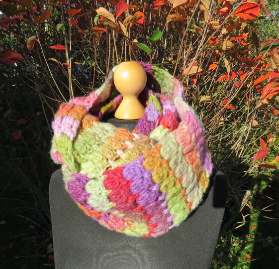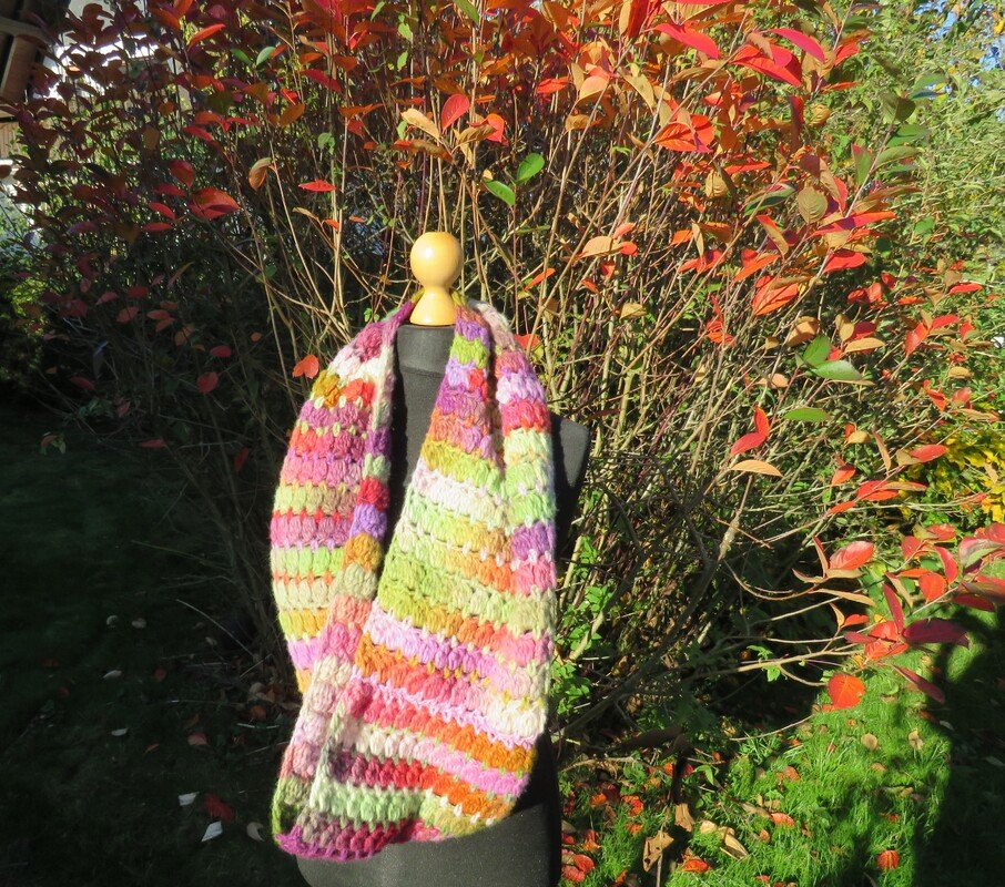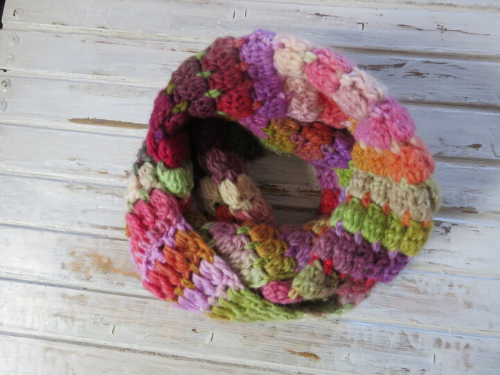 Häkelanleitung für einen kuscheligen Loopschal. Mit dem einfachen und schnell-wachsendem „Clusterstitch-Muster“ kann man die Maschen gut erkennen und leicht wiederholen. Wer lieber einen Schal machen möchte, kann die Kanten einfach offenlassen.