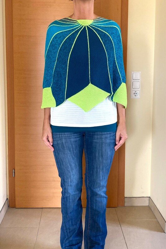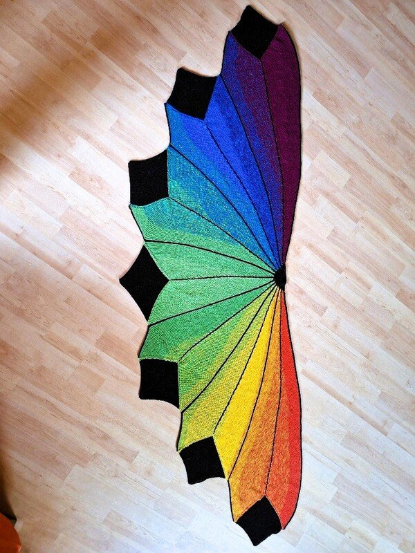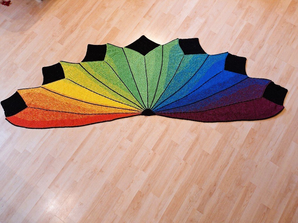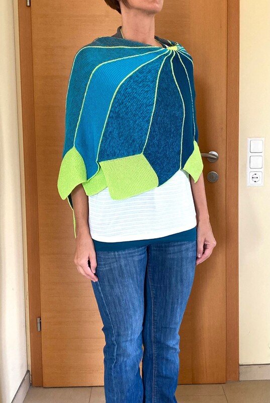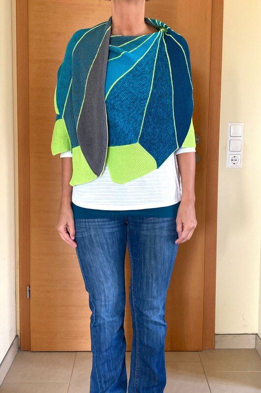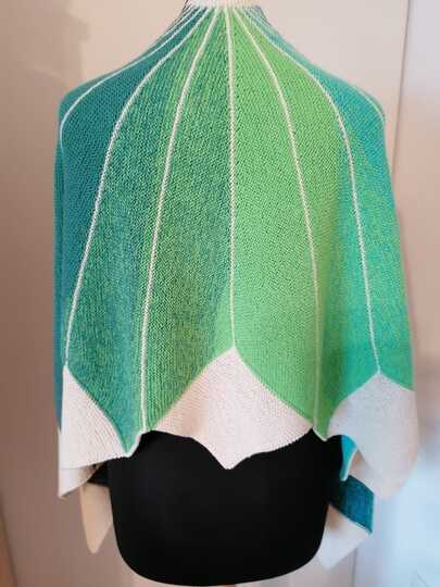 Es ist ein halbrundes Tuch mit vielen verkürzten Reihen.