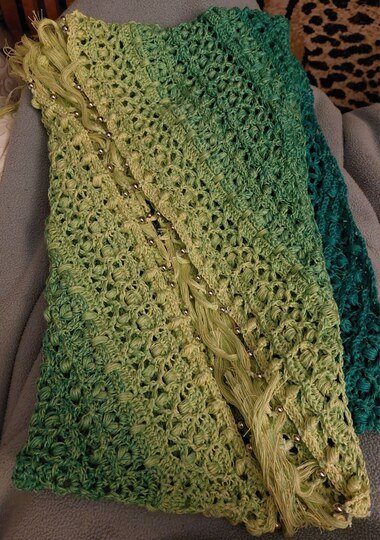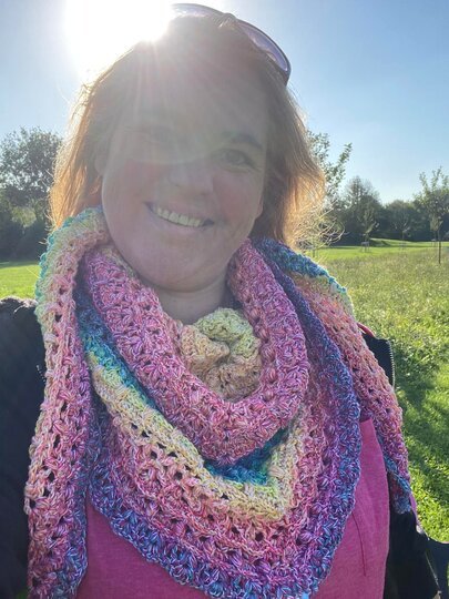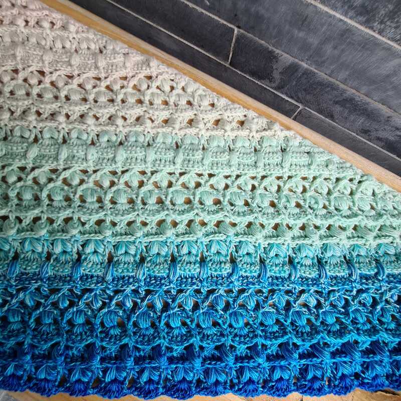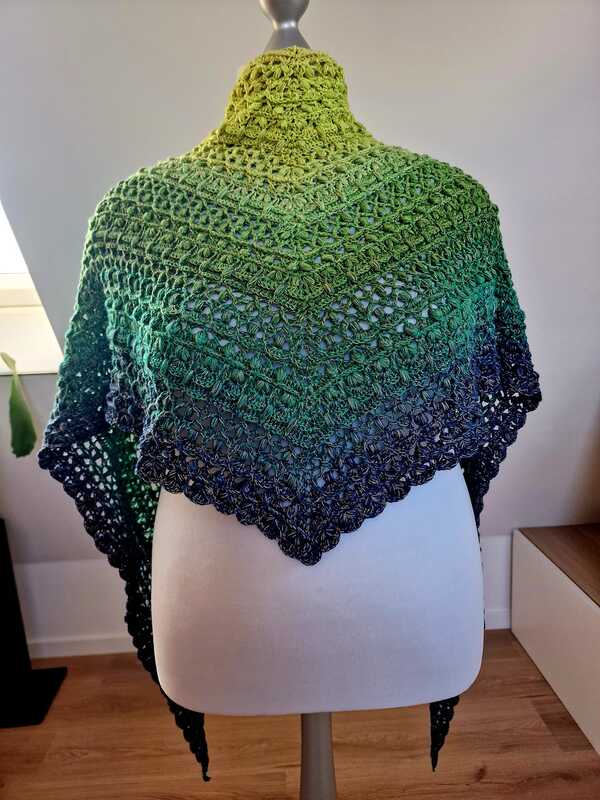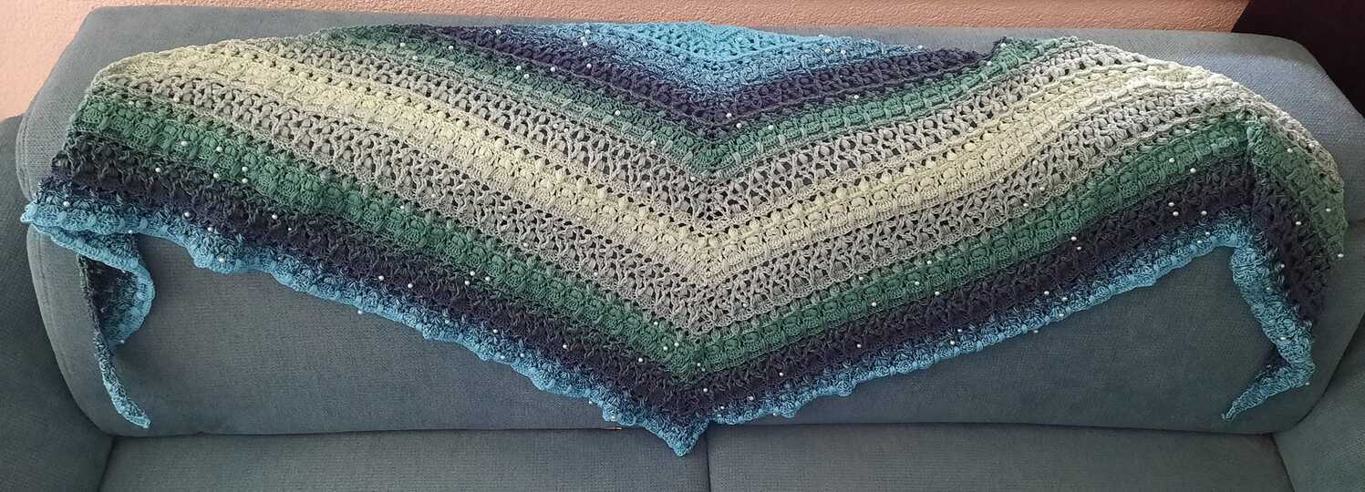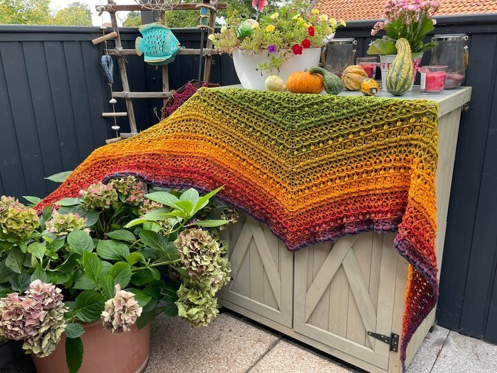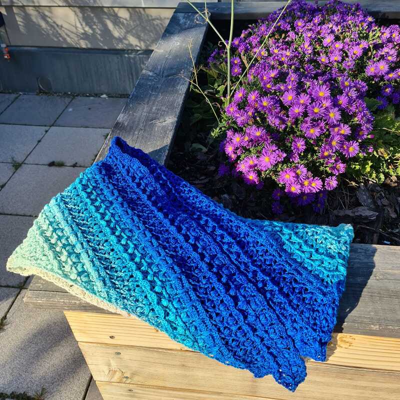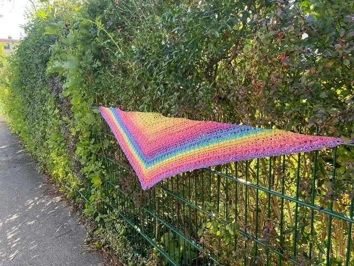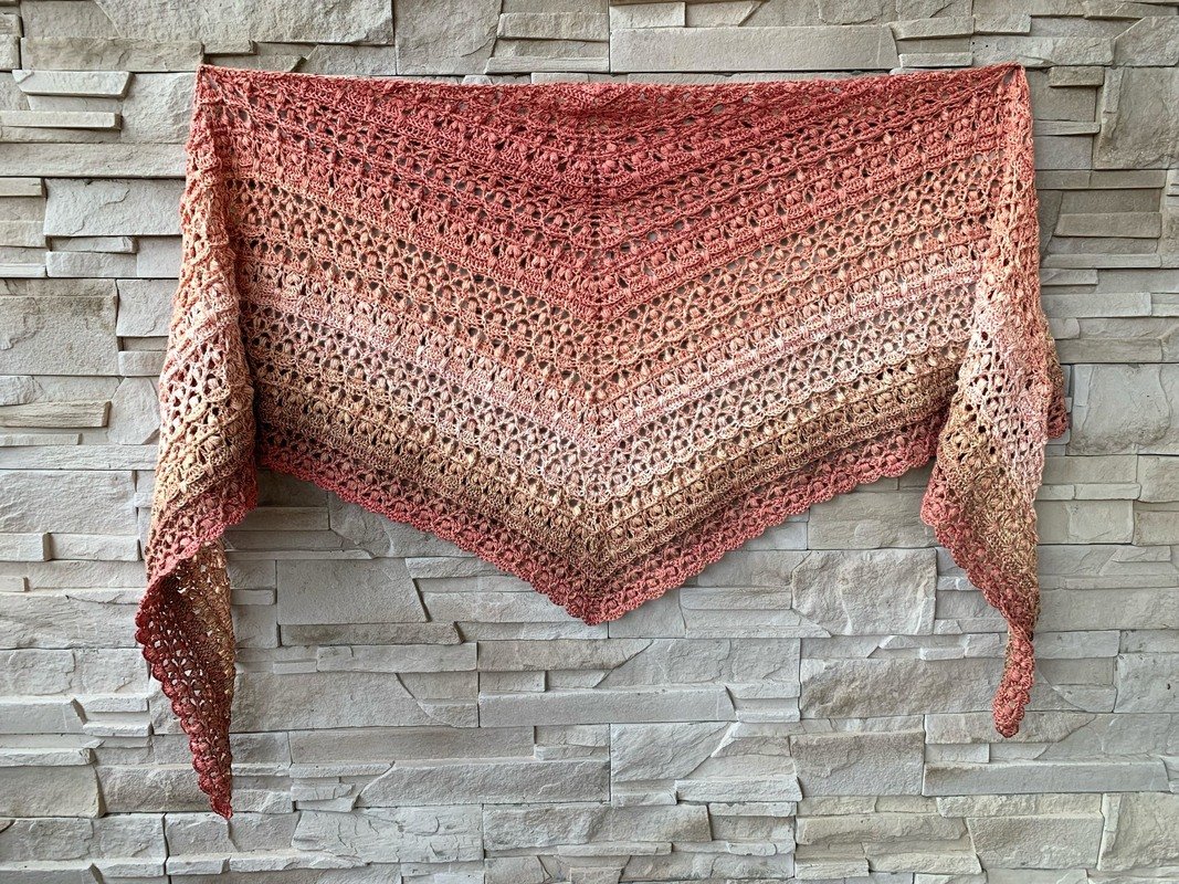 Die Anleitung beinhaltet weitere Reihen, sodass du dein Tuch auch größer häkeln kannst. Bitte beachte, wenn du andere Wolle oder eine andere Häkelnadelstärke verwendest, kann die Größe abweichen.
