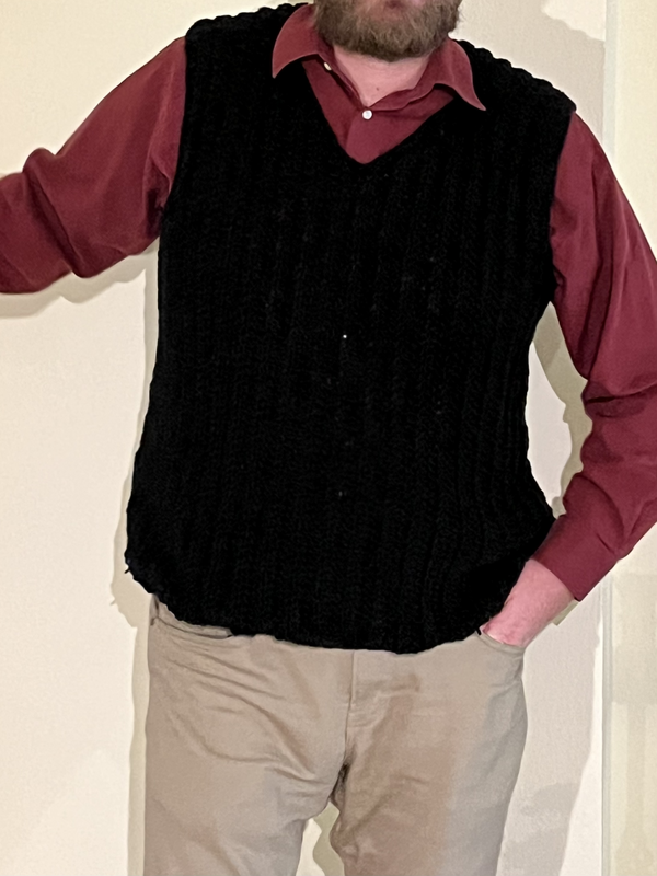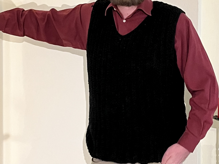 Dieser Pullunder besticht mit seinem Muster, das besonders für Einstiger geeignet ist. Das Kleidungsstück besteht fast komplett aus hinten eingestochenen halben Stäbchen. Dadurch entsteht eine Art Mini-Zopfmuster, das den Pullunder elegant erscheinen lässt. Durch die hinten eingestochenen Maschen wird der Pullunder etwas dicker und ist dadurch perfekt für kalte Tage.
