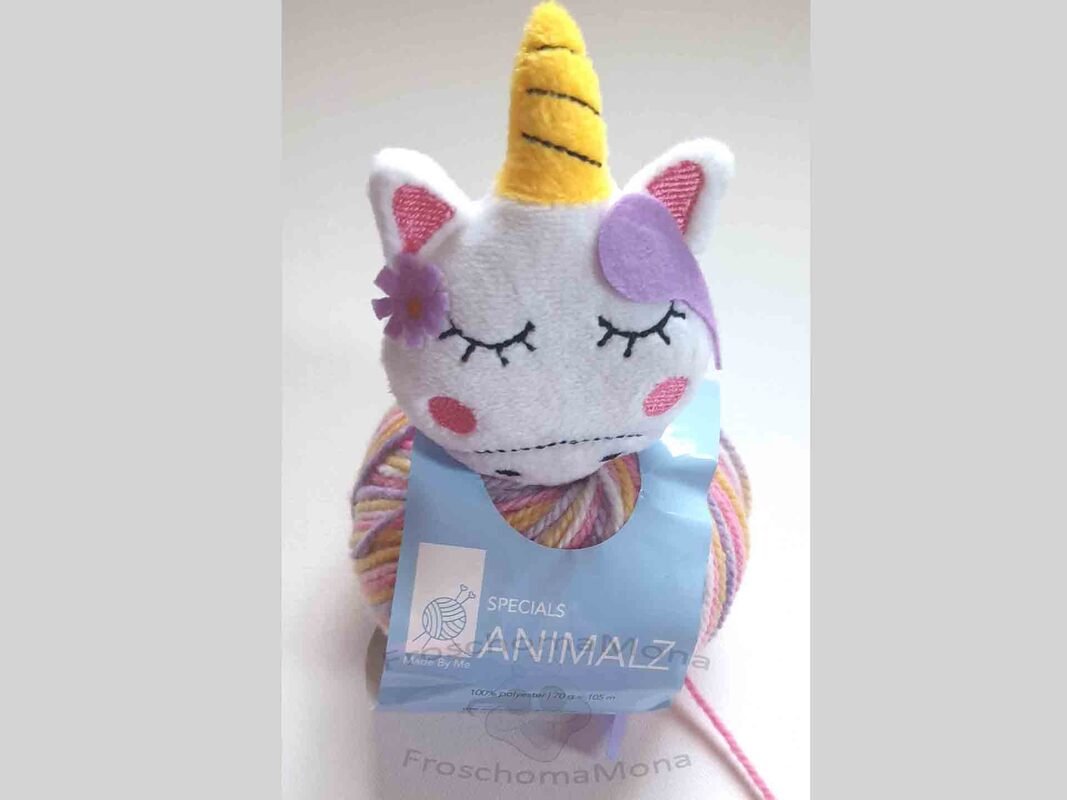 Als Garn habe ich Wolle verwendet, die ursprünglich für eine Einhorn-Mütze vorgesehen war.
