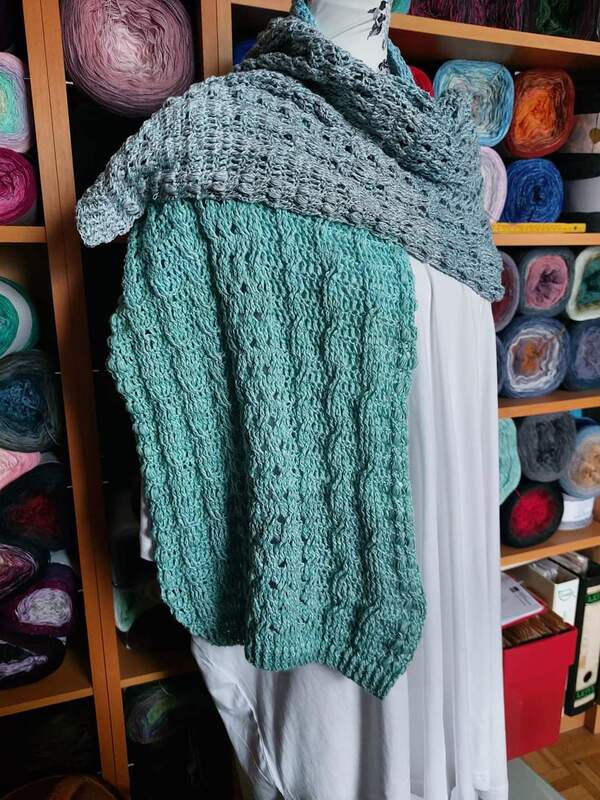Das Tuch kann mit Farbverlaufsgarn und auch jedem anderen gewünschten Garn gehäkelt werden.