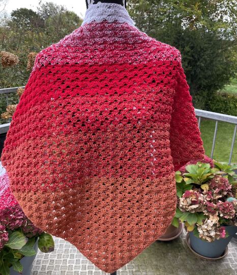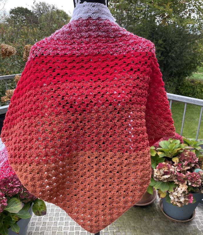 Mit dickerer Wolle und größerer Nadelstärke (als 4,0) wird das Tuch entsprechend größer. Man kann dieser Tuch aus aus Wolle häkeln, anstelle eines Farbverlaufsbobbels.