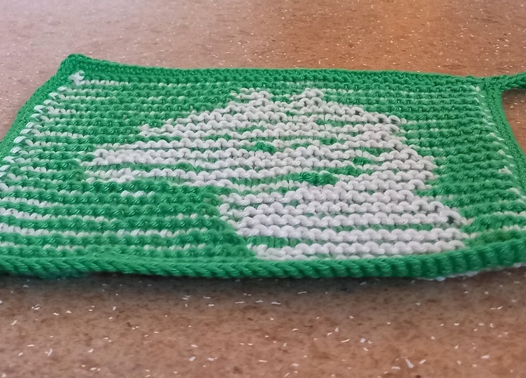 Ihr benötigt jeweils zwei gleichstarke Garne mit starkem Hell-Dunkel-Kontrast (z.B. Grün und Weiß). Für Topflappen empfiehlt sich 8/8 Baumwollgarn (z.B. Cotton 8/8 von Hobbii). Für Spüllappen könnt ihr auch dünneres Garn nehmen - auch hier aber wegen der guten Hitzebeständigkeit Baumwolle oder Leinen, z.B. Baumwollgarn 8/4. Und natürlich könnt ihr für andere Projekte auch anderes Garn verwenden! Je ein 50-g-Knäuel 8/8-Garn pro Farbe reicht für zwei Topflappen ohne Umrandung. Für die Umrandung braucht ihr pro Lappen etwa einen weiteren Viertel 50-g-Knäuel. Vom 8/4-Baumwollgarn genügt je ein Knäuel einer Farbe für vier Lappen (ohne Umrandung). Dazu benötigt ihr Stricknadeln – ich habe für die Topflappen 4er verwendet (im Zweifel lieber die dünnere wählen) - und eine passende Häkelnadel (bei mir 3,5). Für dünnere Lappen: Stricknadel 3, Häkelnadel 2,5.