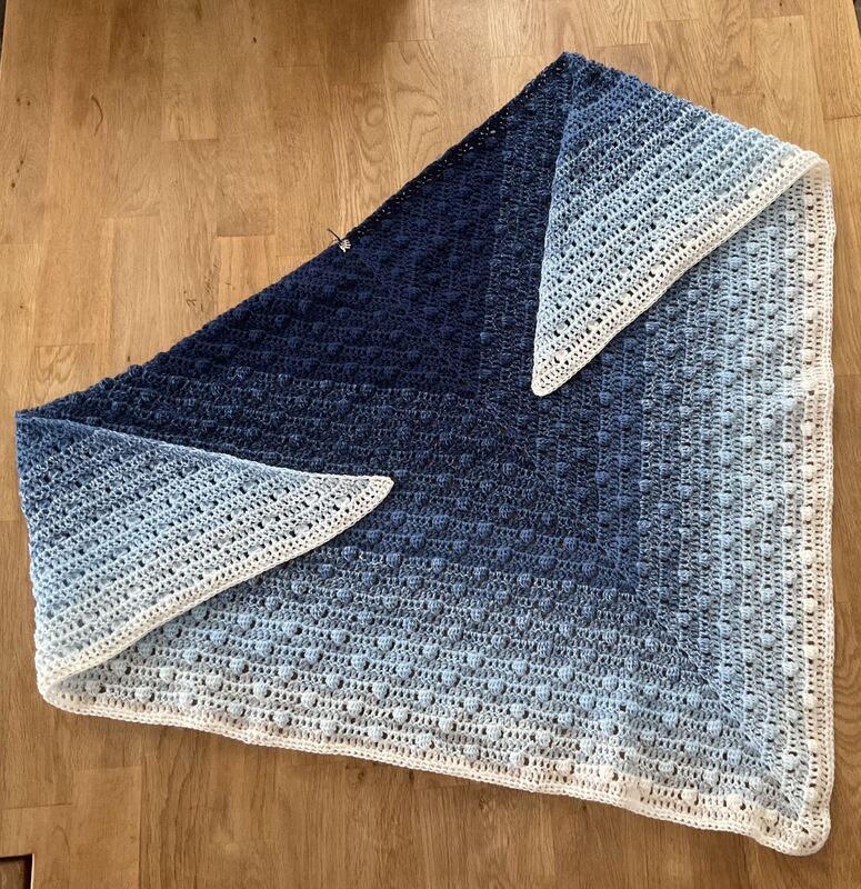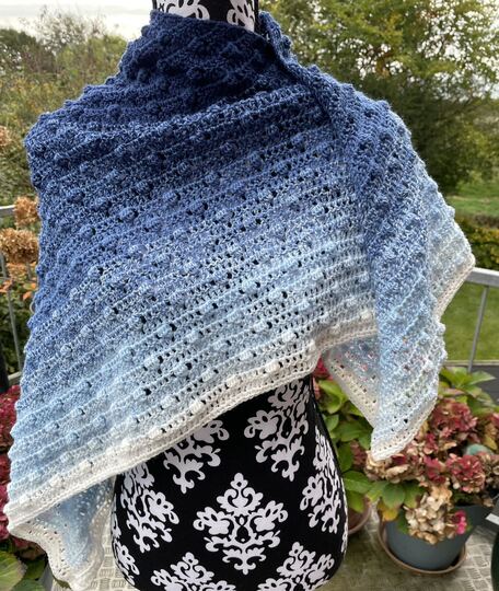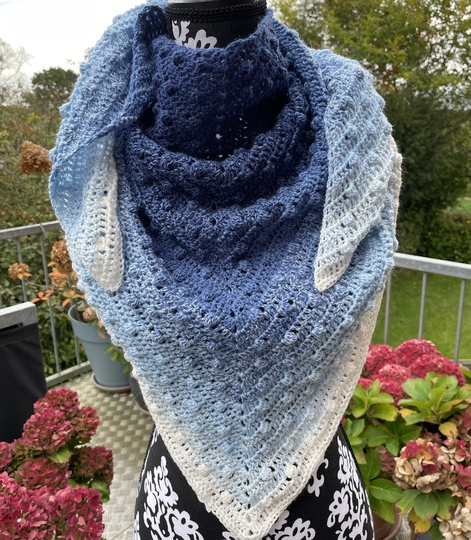 Mit dickerer Wolle und größerer Nadelstärke (als 4,0) wird das Tuch entsprechend größer. Man kann dieser Tuch aus aus Wolle häkeln, anstelle eines Farbverlaufsbobbels.