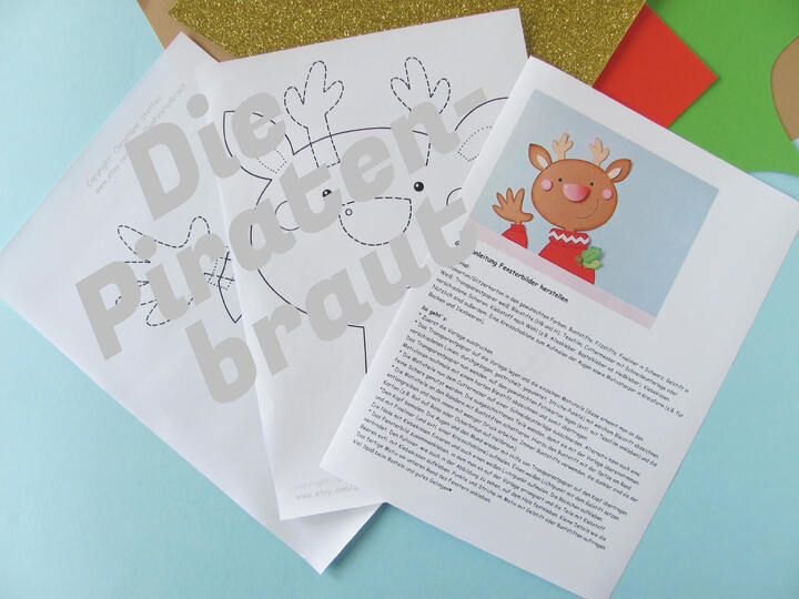 In diesem Download findest du Vorlage und Anleitung für ein lustiges Rentier-Fensterbild. Das "Fenstergucker"-Motiv wird an der Fensterkante angebracht und winkt jedem fröhlich zu. Aber auch an einem Türrahmen sieht das Rentier mit seinem Norwegerpullover sehr schön aus. Da das Motiv große Teile hat, ist es einfach nachzuarbeiten.