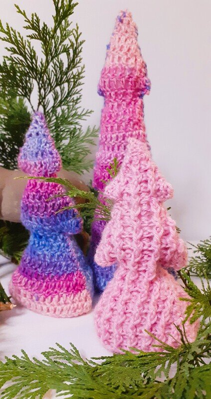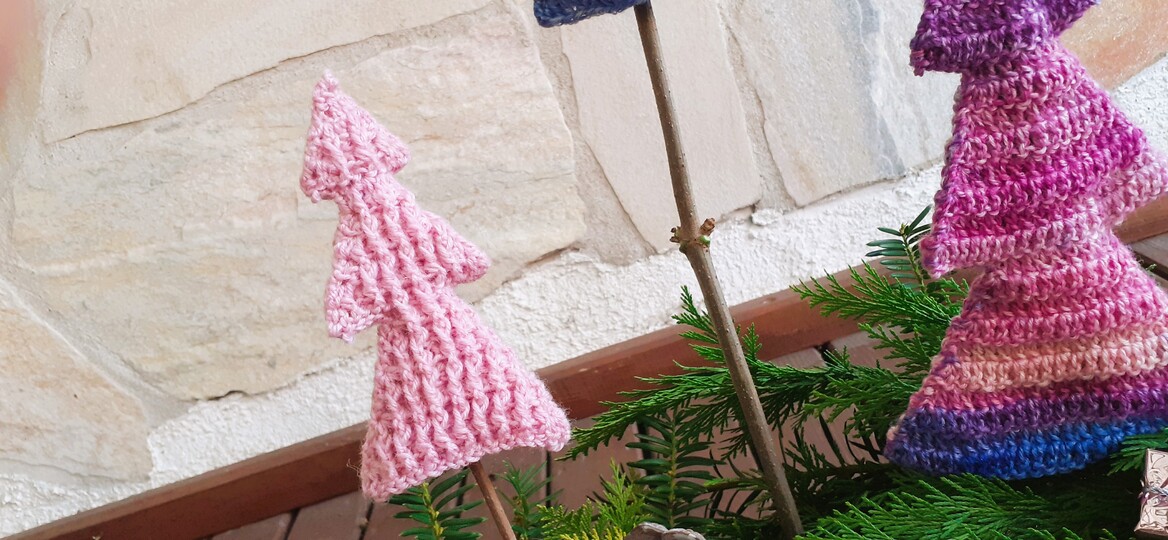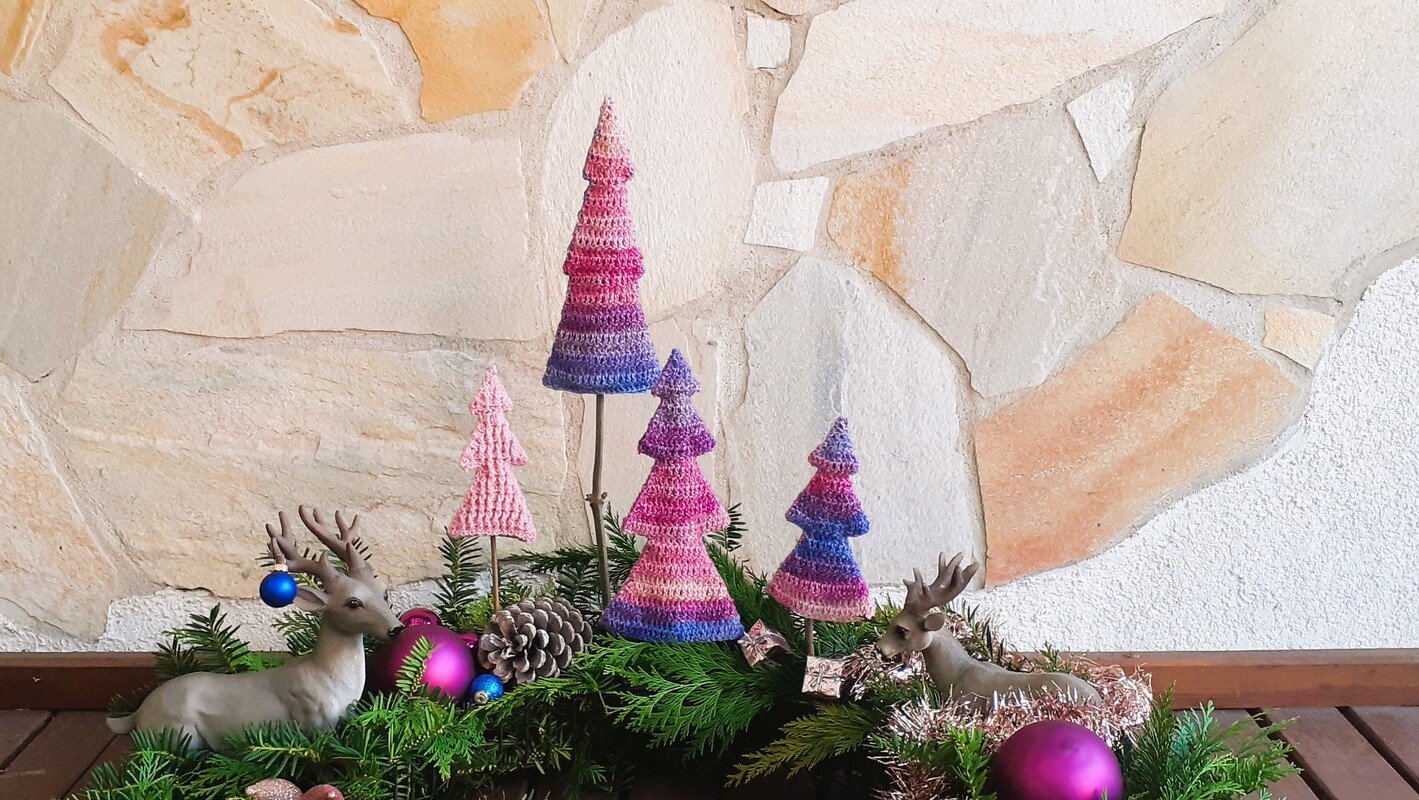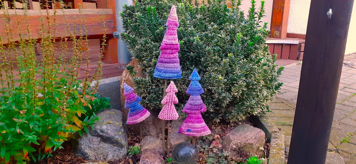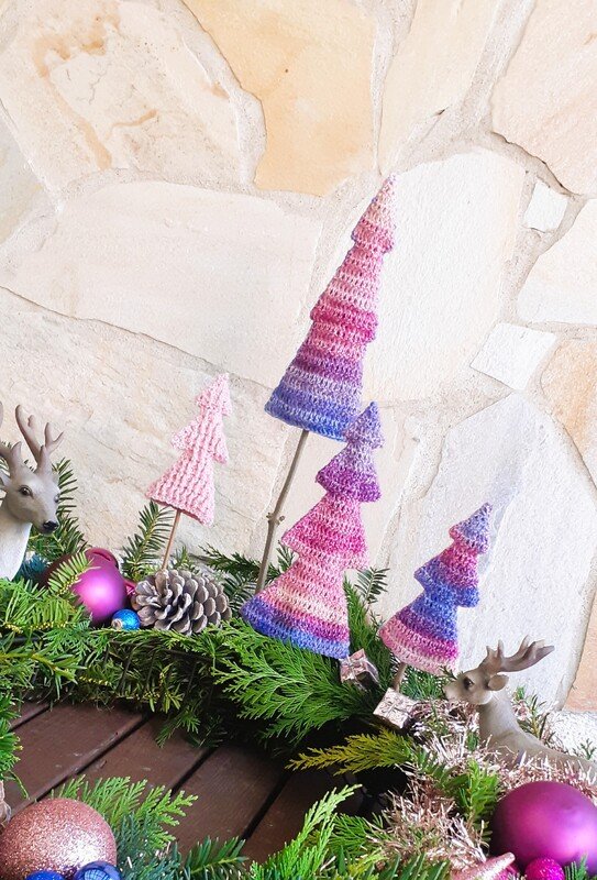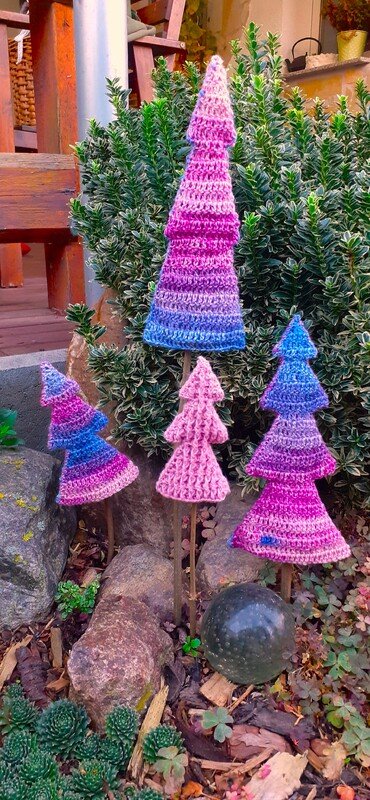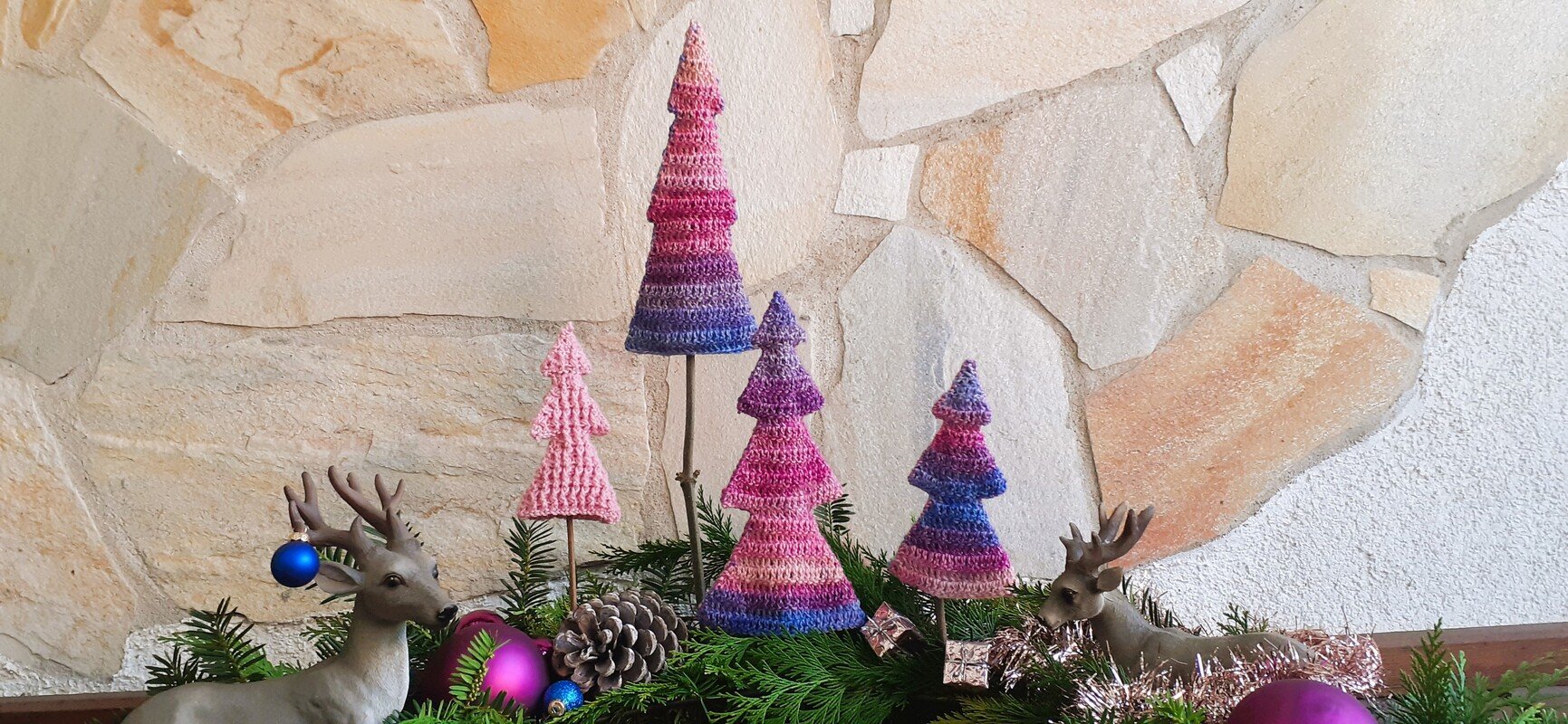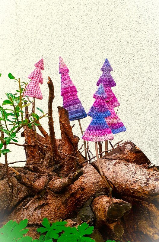 Meine Bäume sind mit 4fach Sockenwolle gearbeitet (Häkelnadel 3,5)